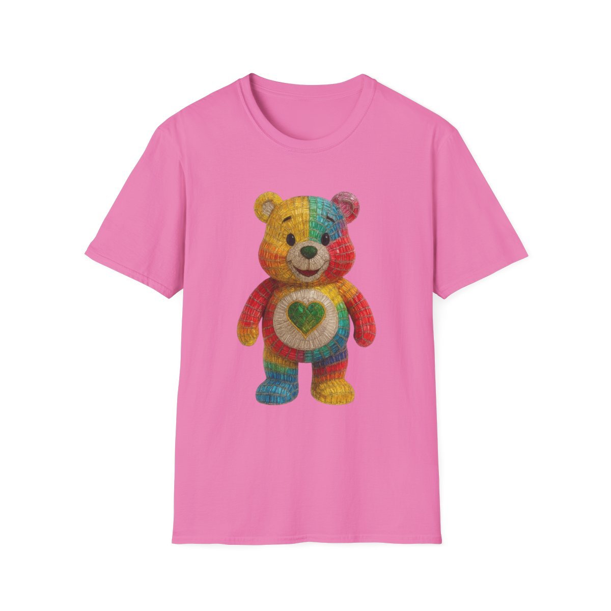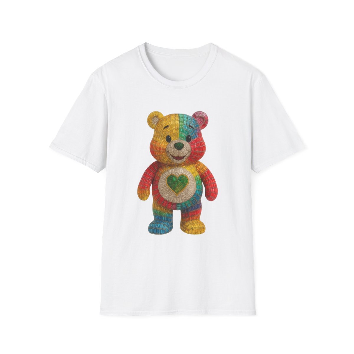 Unisex softstyle t-shirt with rainbow love bear design. Made with 100% ring-spun cotton, this lightweight classic fit t-shirt with the crew neckline delivers a clean, versatile style that can match any occasion. Available in 14 colors 9 sizes*.
