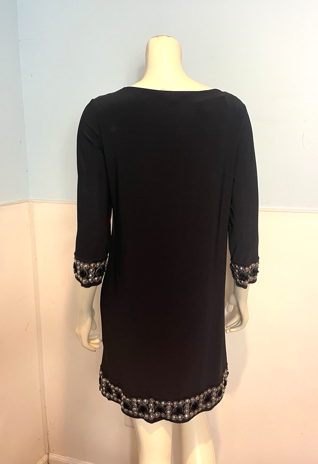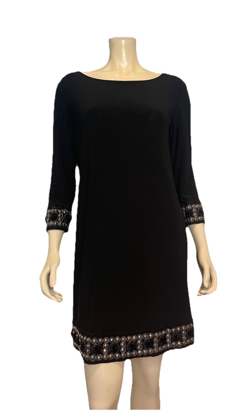 NWT Tiana B. Black Knit Long Sleeve Boat Neck Dress Embellished 12P