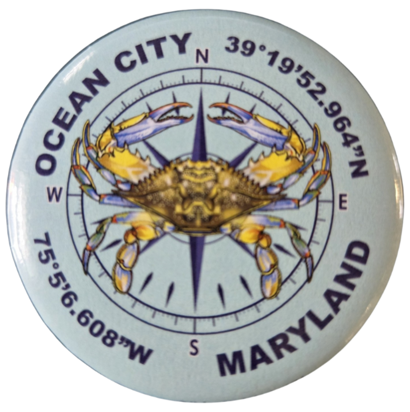Ocean City Maryland Compass Round Small Fridge Metal Magnet