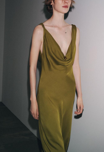 Zara Bnwt 2025. Olive Green Long Satin Dress and 50 similar items