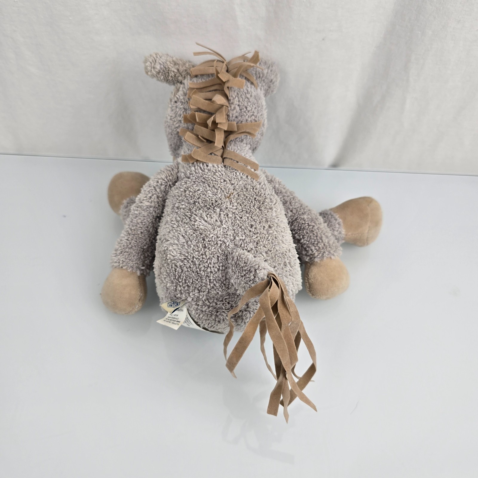 8" sitting or 14" standing, has beans in tush and tips of 4 hooves, stuffed with fluff elsewhere. Used, no rips, stains or holes. Smoke-free home.