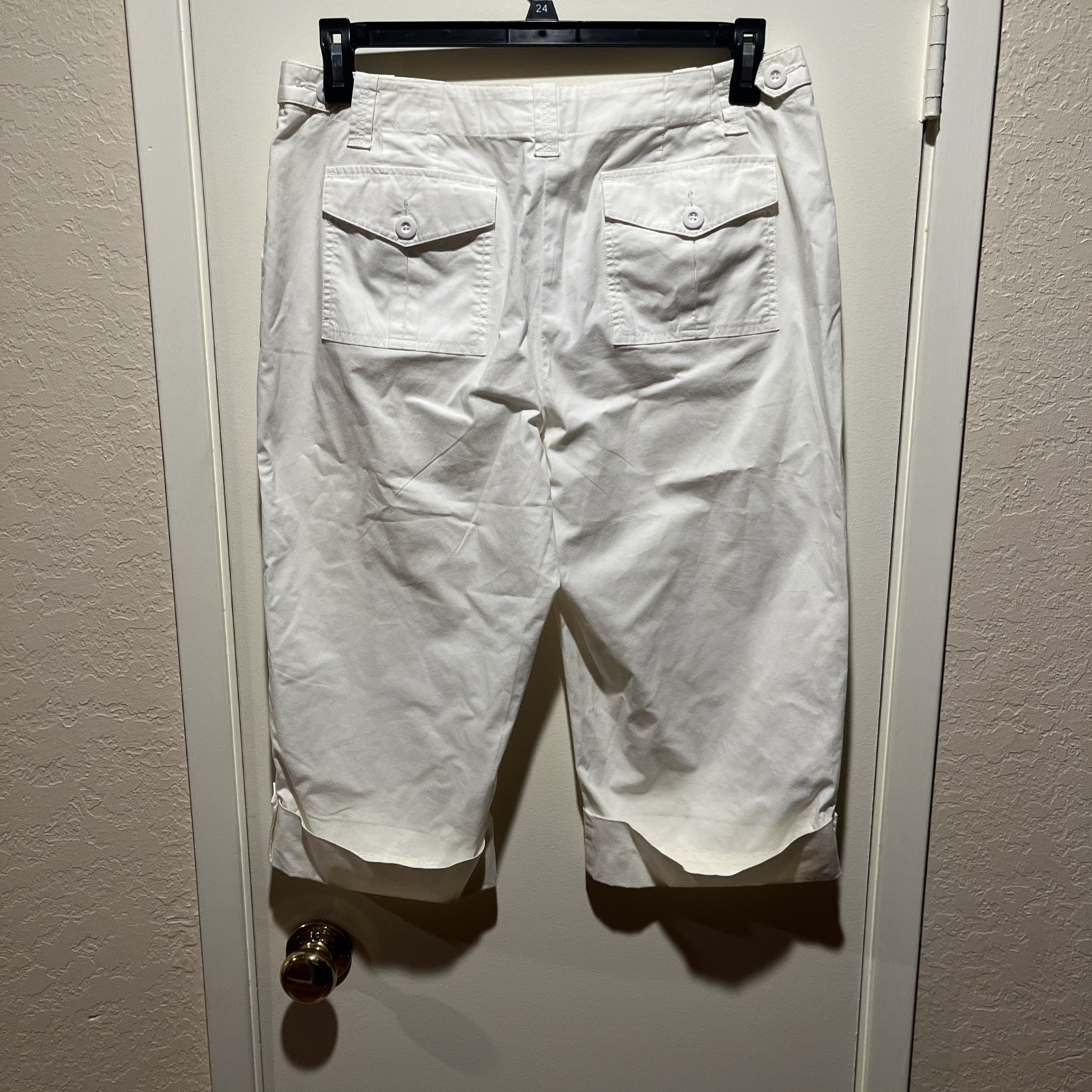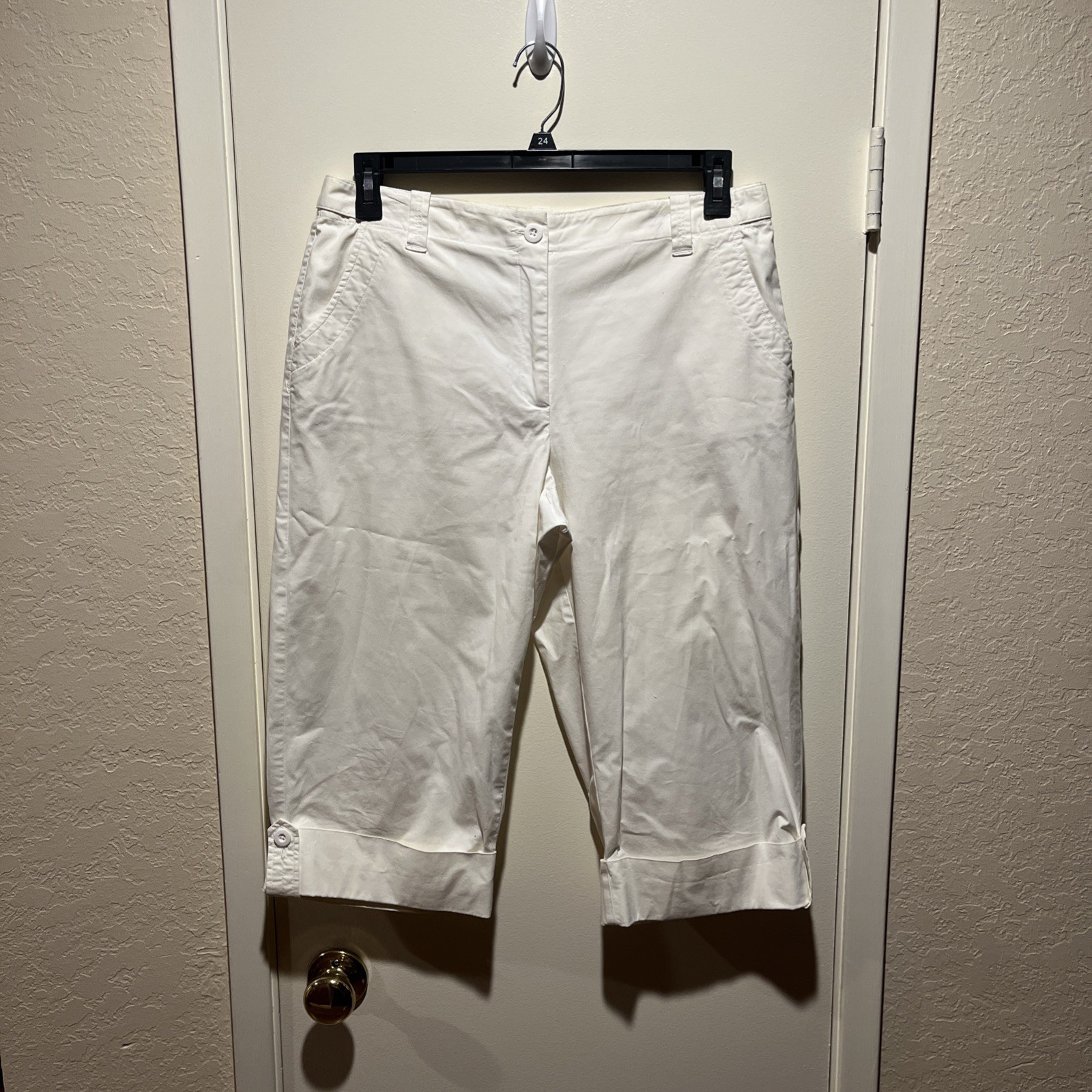 Talbots White Crop Cropped Pants With Cuffs, Pockets Size 12P Petites Stretch