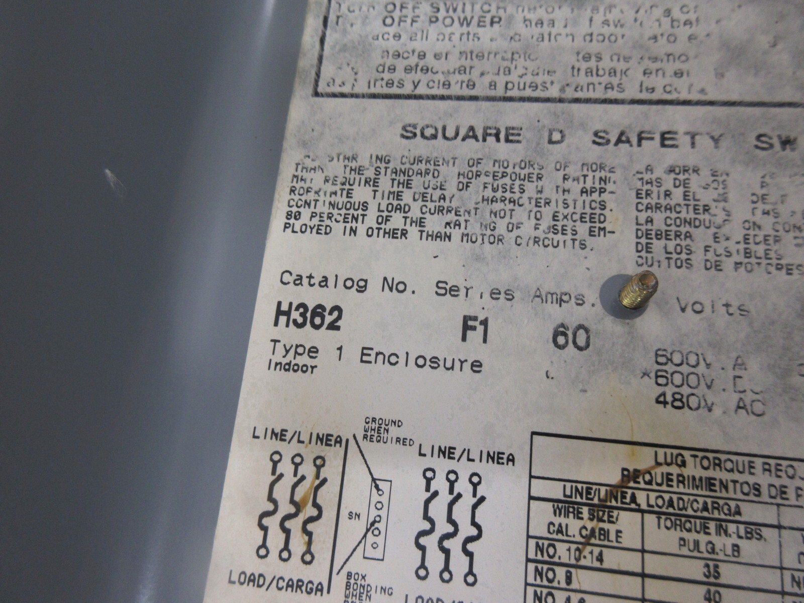 FADAL VMC40 CNC ELECTRICAL SQUARE D ENCLOSED SWITCH KTS-R-40 H362 F1 60AMPS