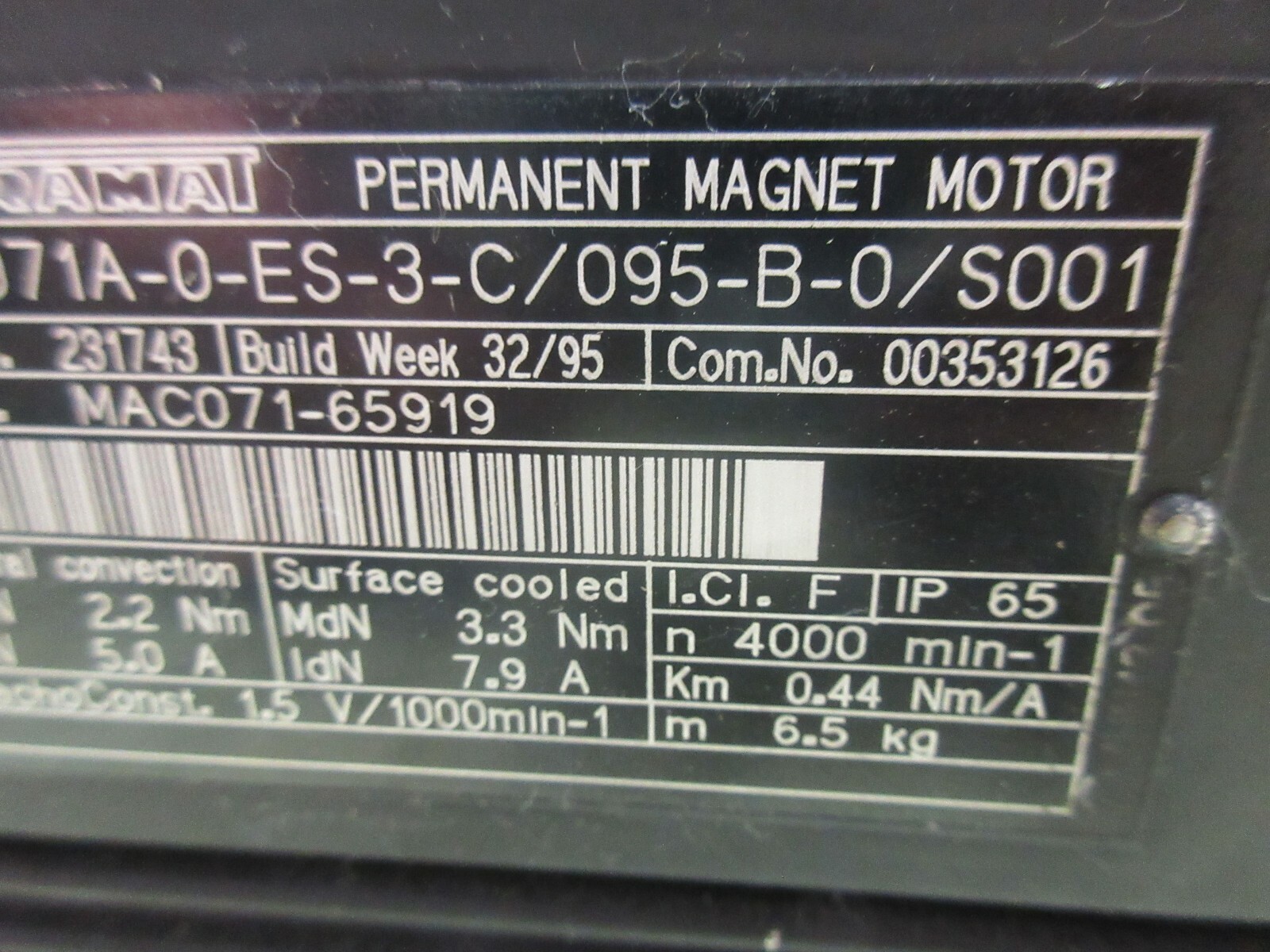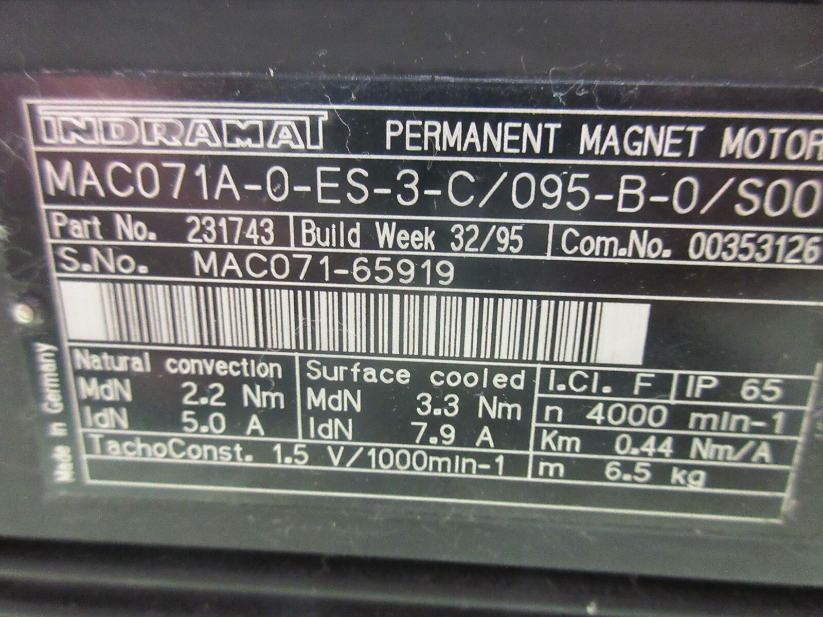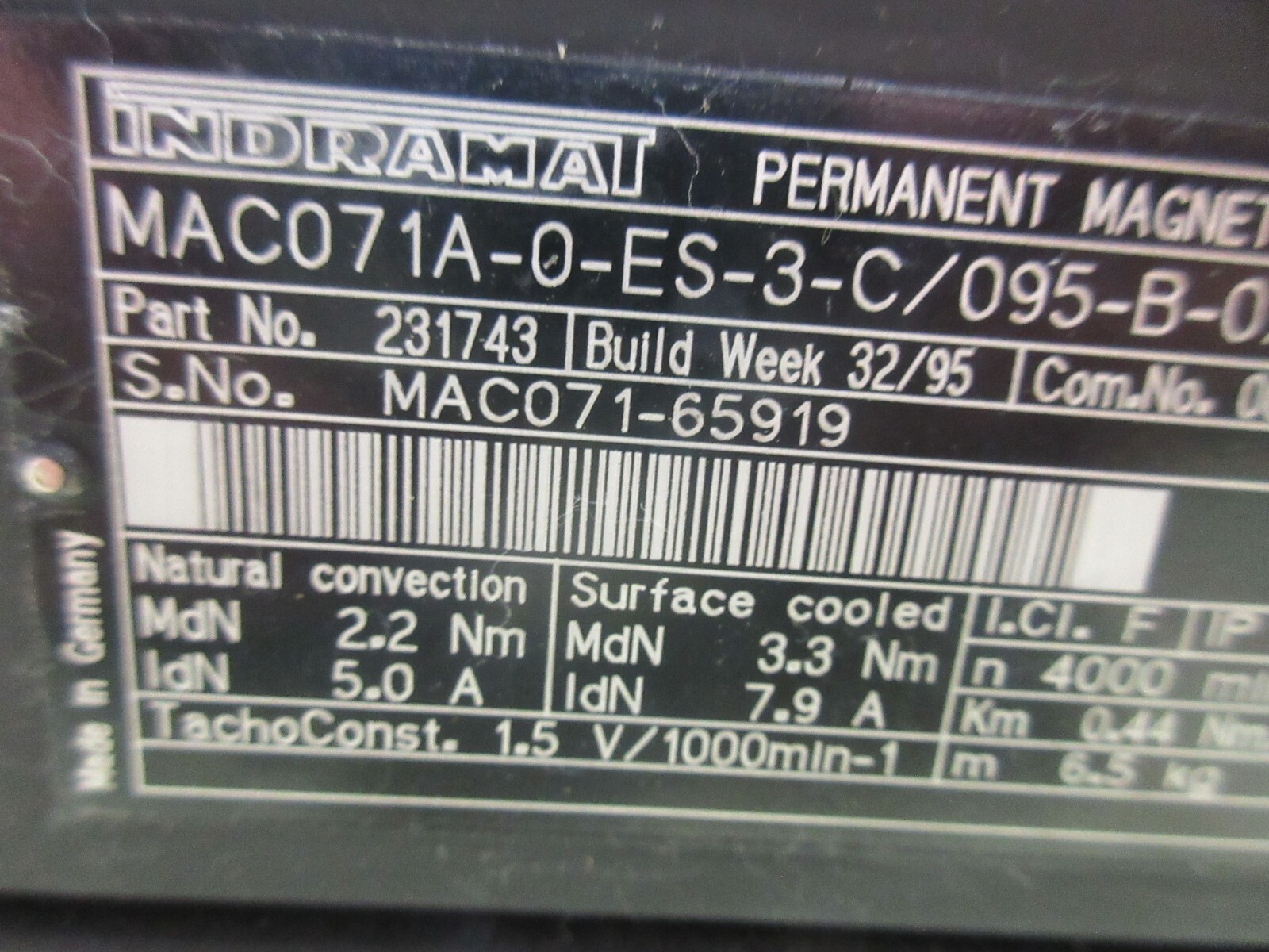 INDRAMAT MAGNET MOTOR MAC071A-0-ES-3-C/095-B-0/S001 BDG 6360-16S-05-W050-2000