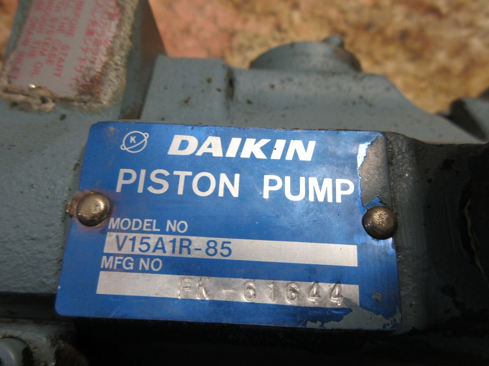 DAIKIN HYDRAULIC OIL MOTOR PUMP V15A1R-85 FEMCO DURGA-15E