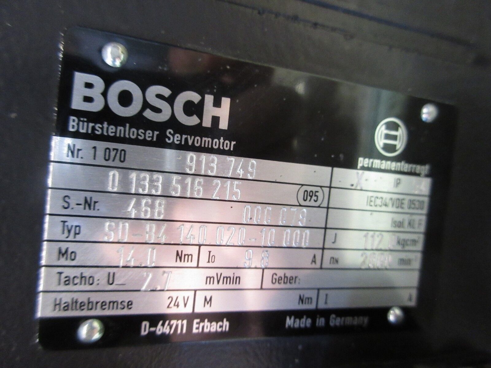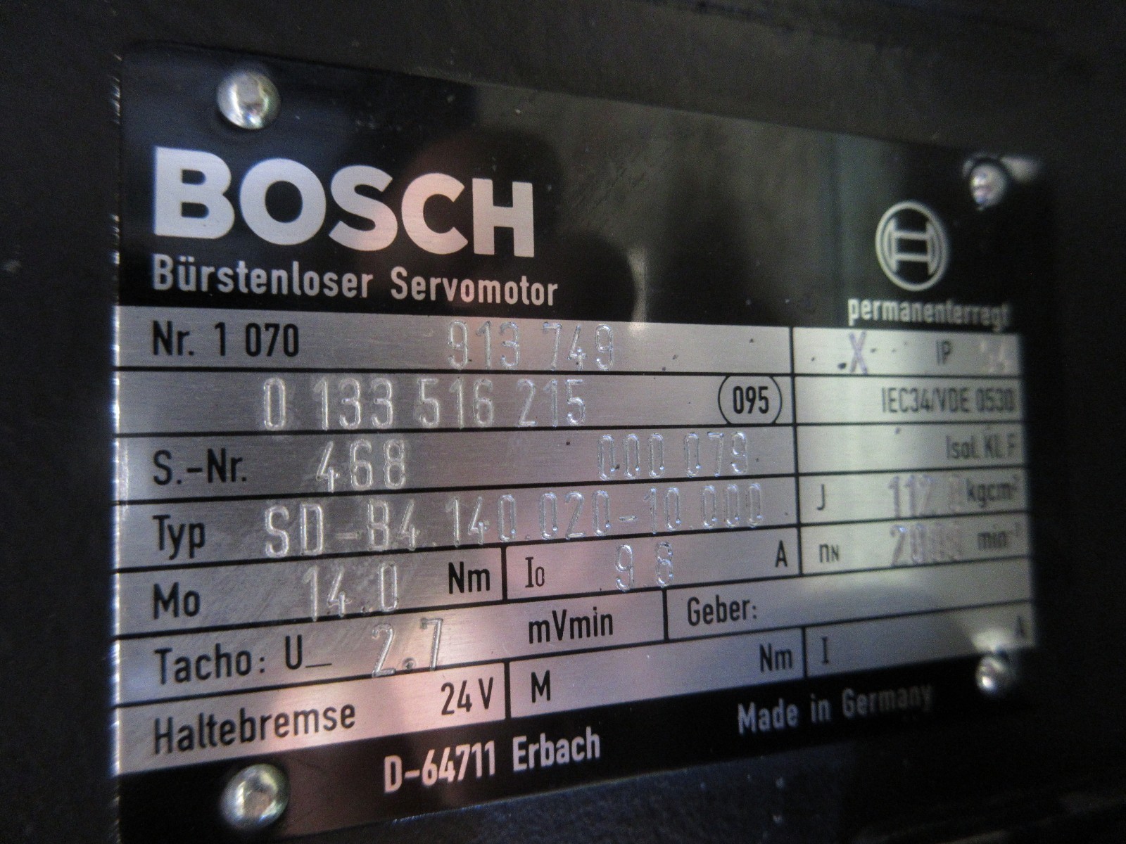 BOSCH SERVO MOTOR NR.1 070 913 749 0 133 516 215 IP54 SD-B4.140.020-10.000