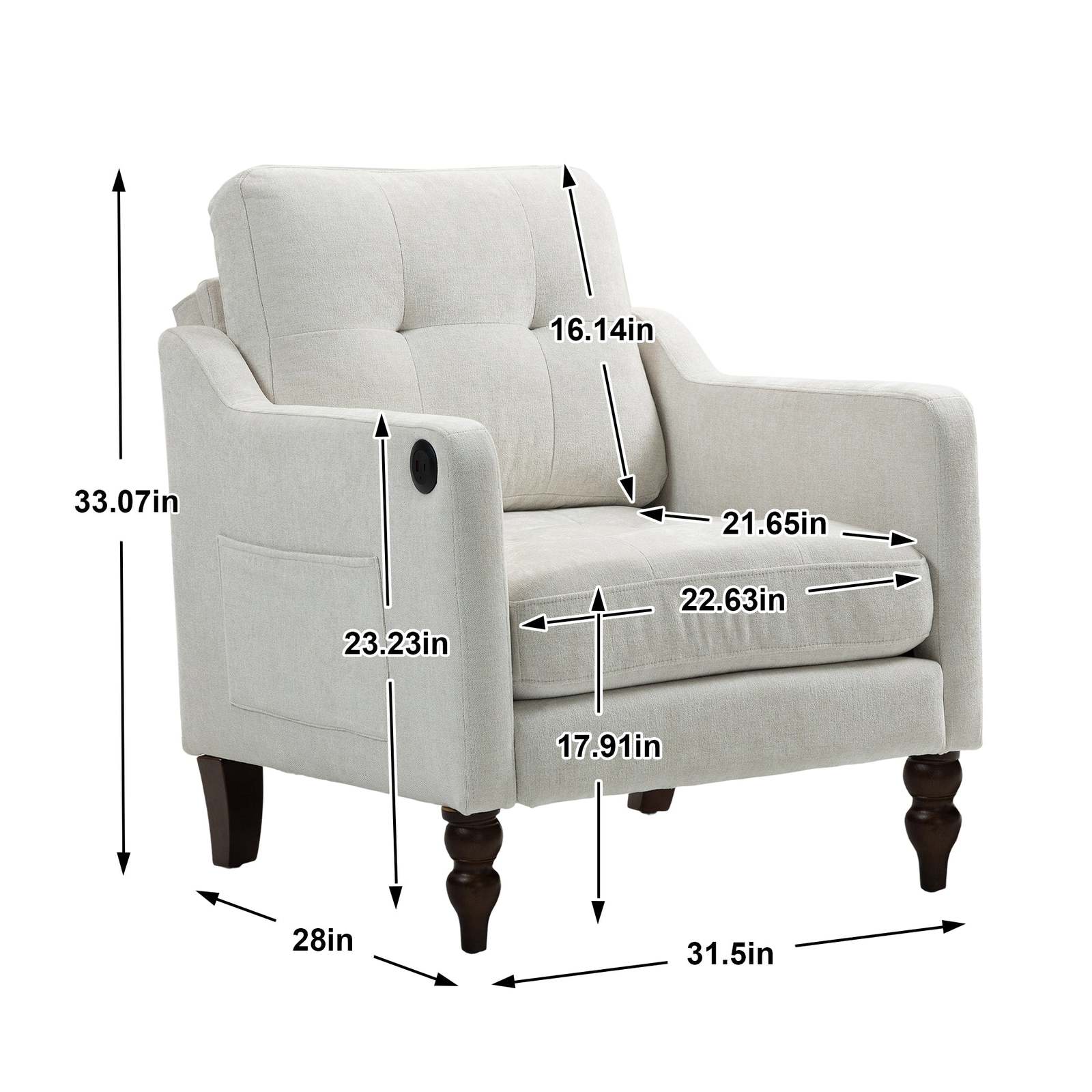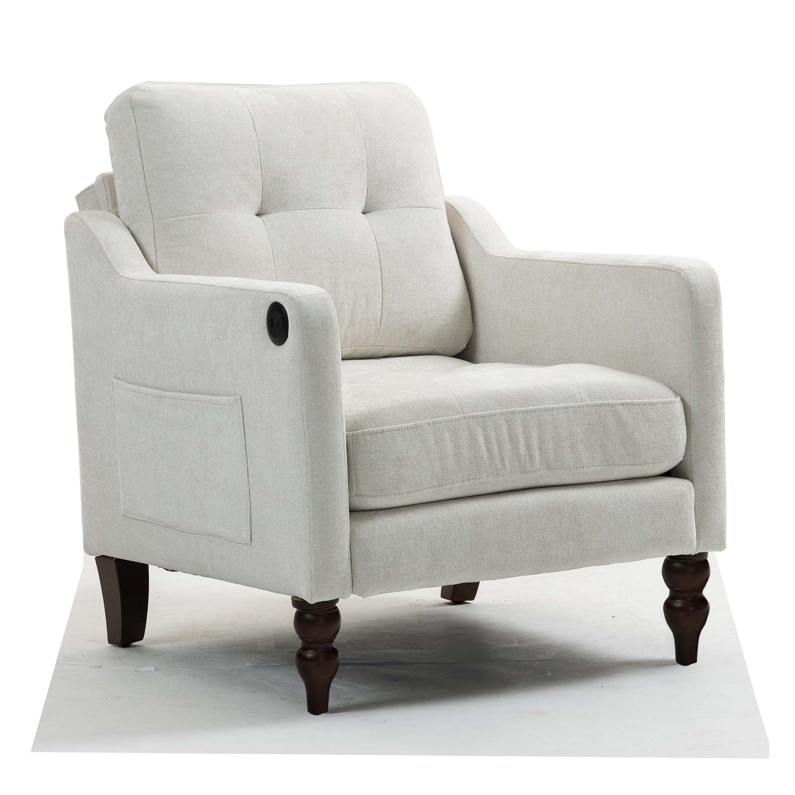 Comfy Chenille Accent Chair w/USB & Storage - Ergonomic Upholstered
