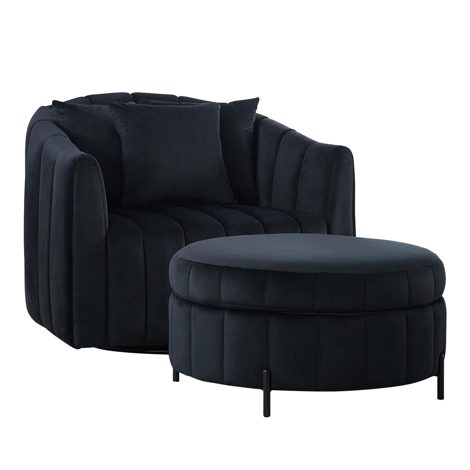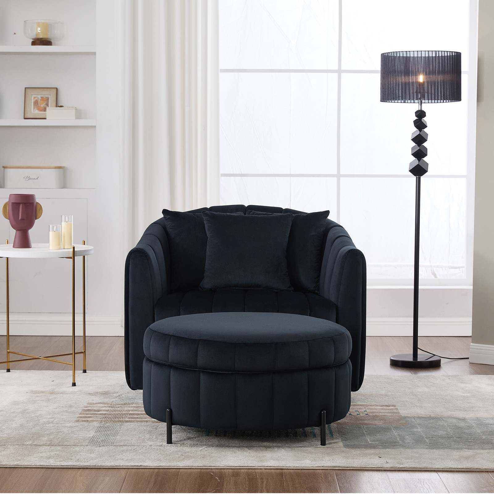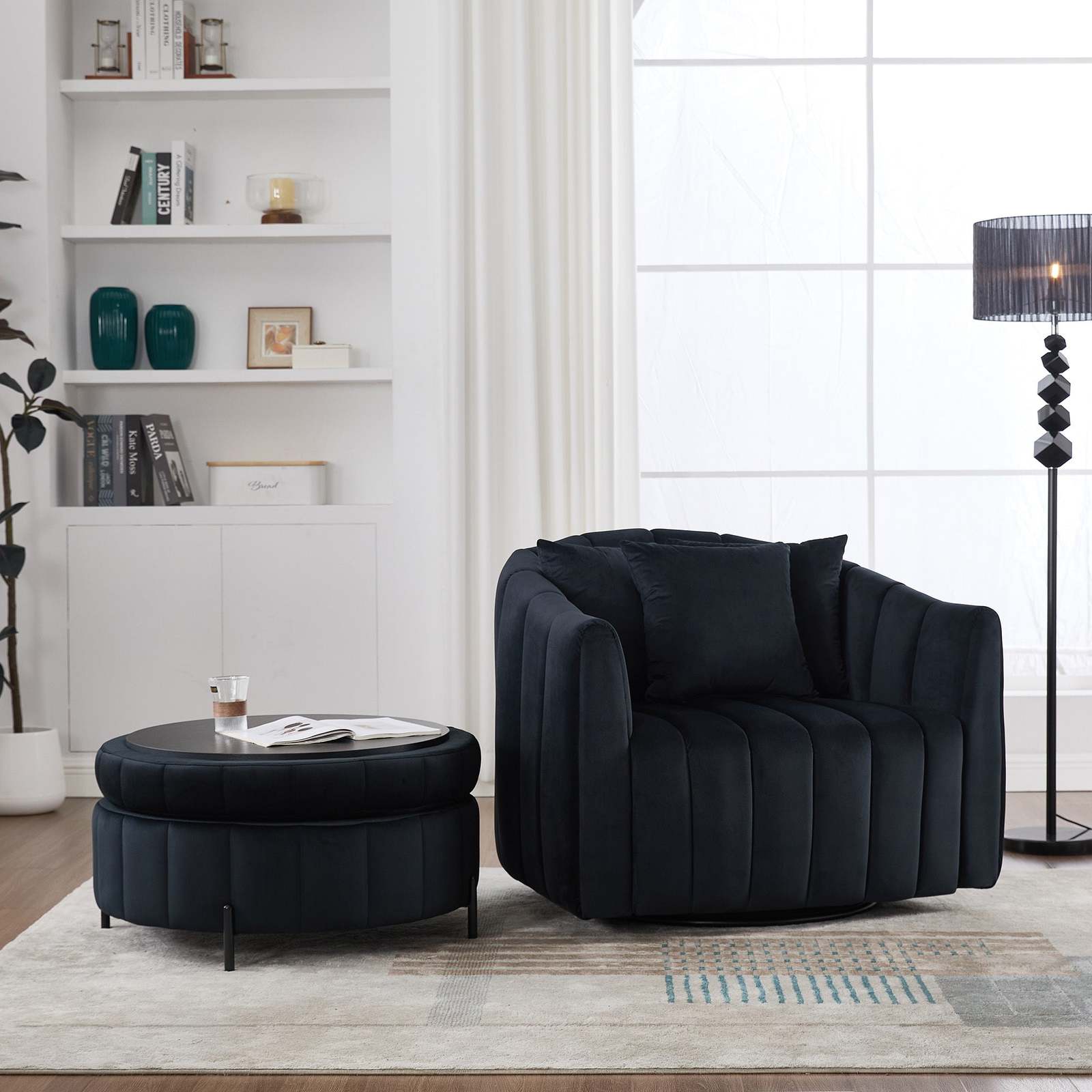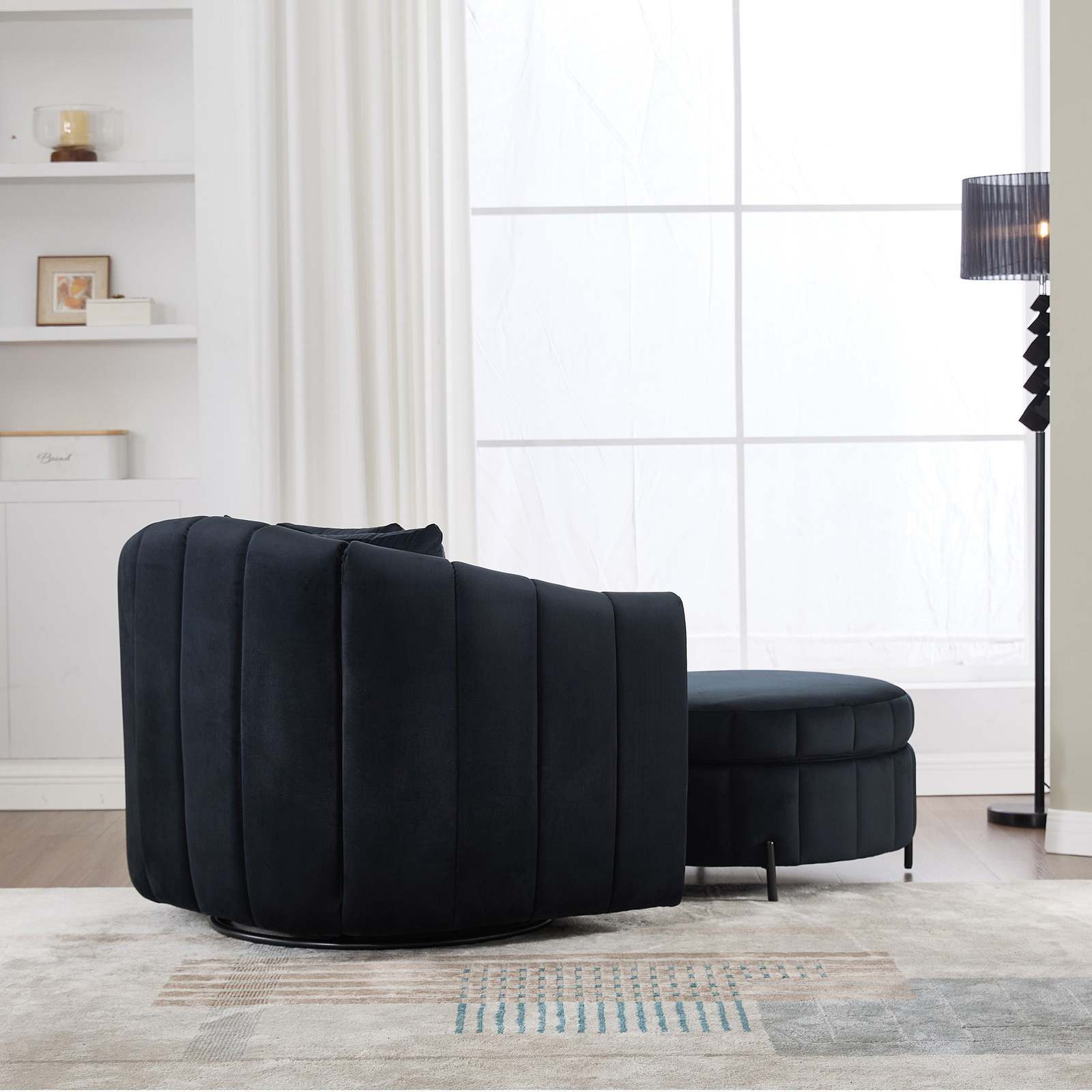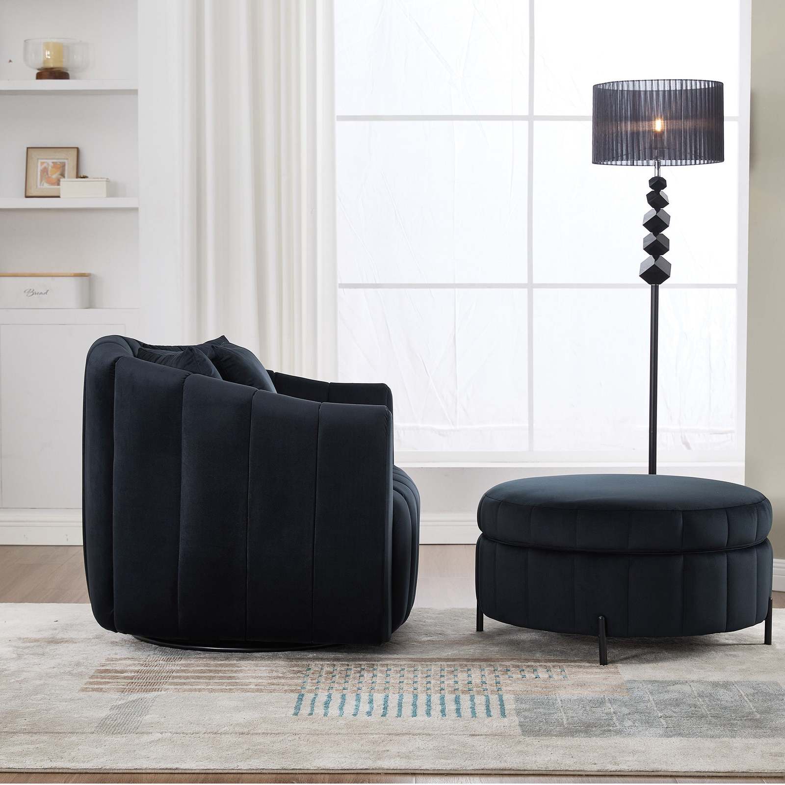 Oversized Velvet Swivel Barrel Chair & Ottoman Set with Storage, Black