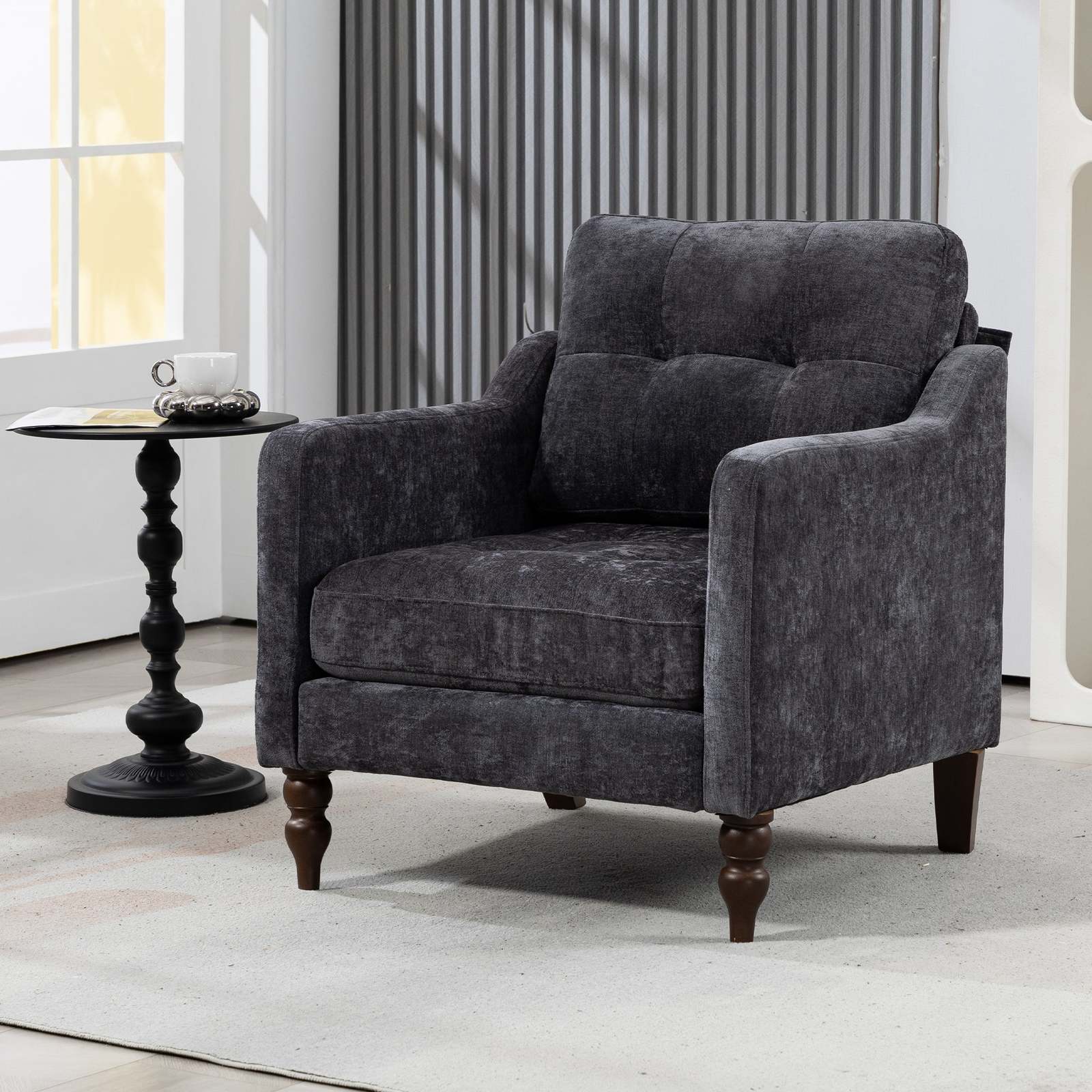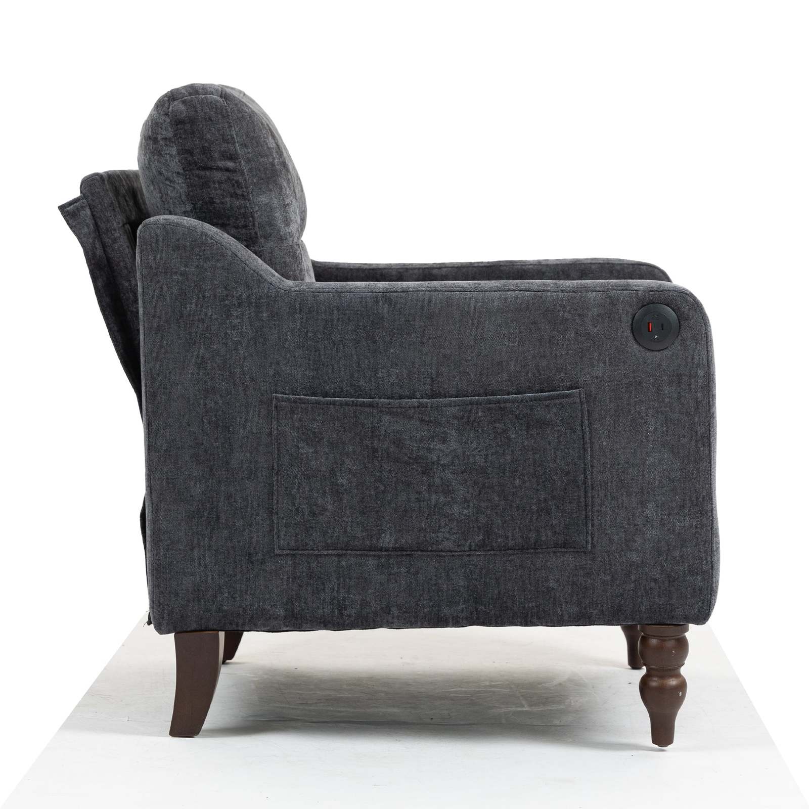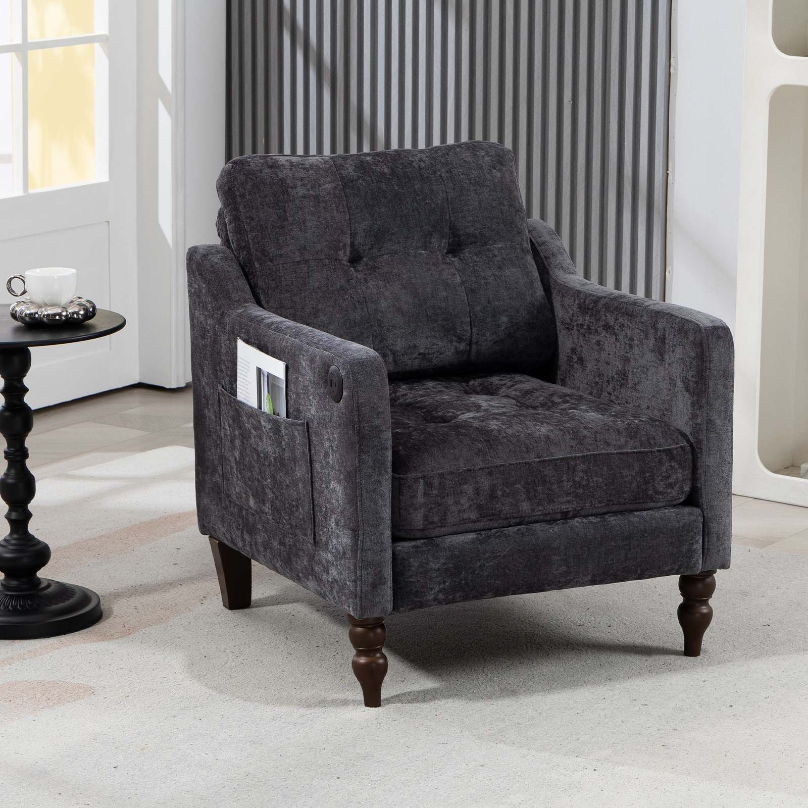 Comfy Chenille Accent Chair w/USB & Storage | Ergonomic Mid-Century