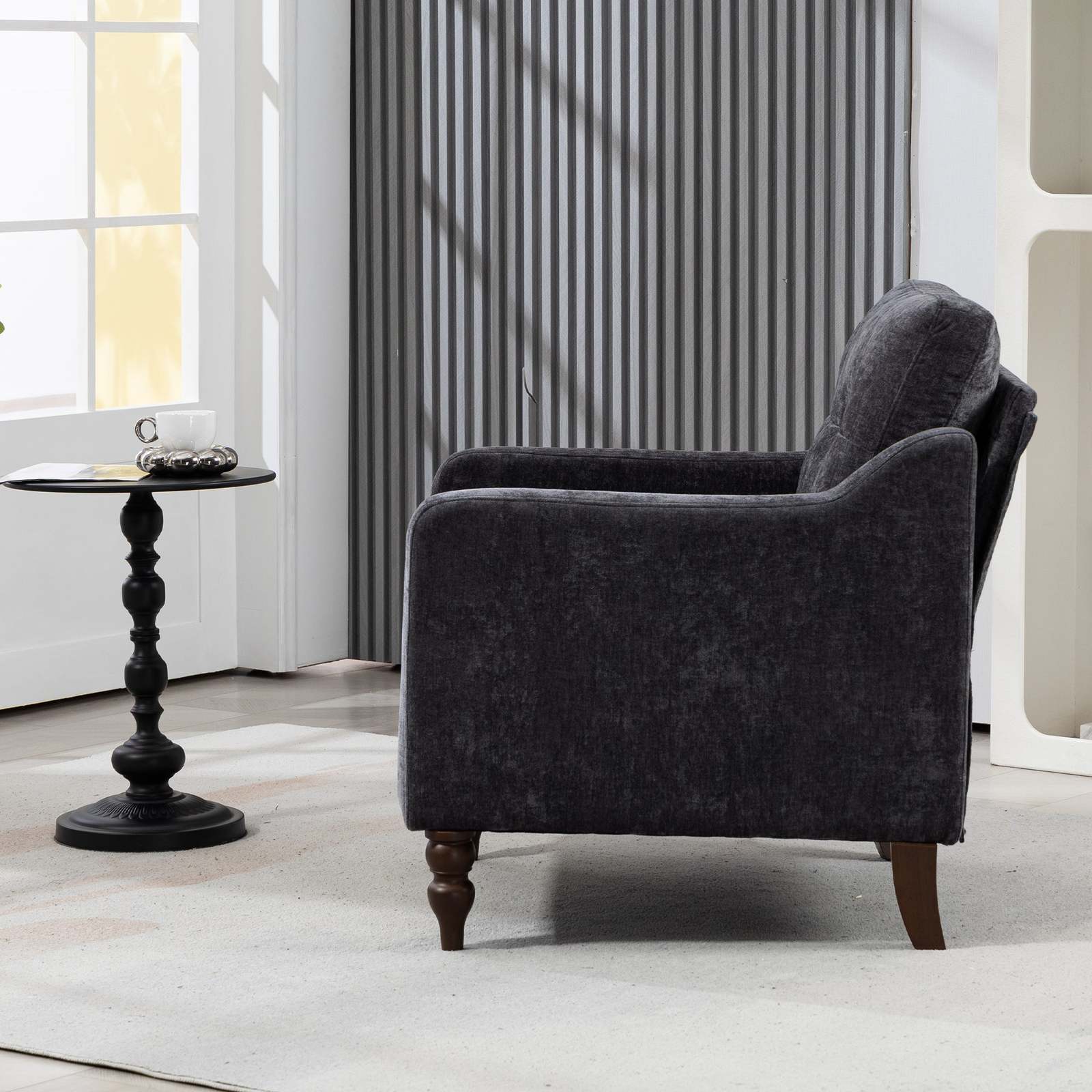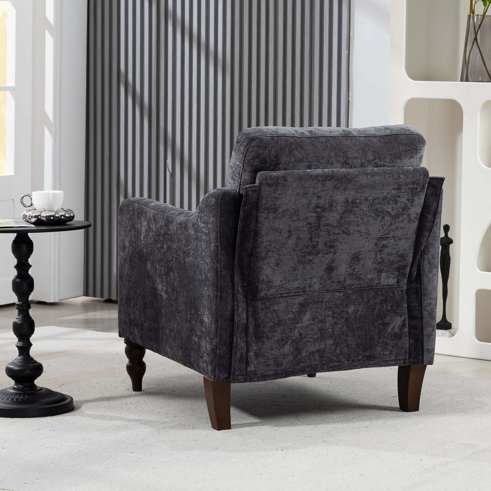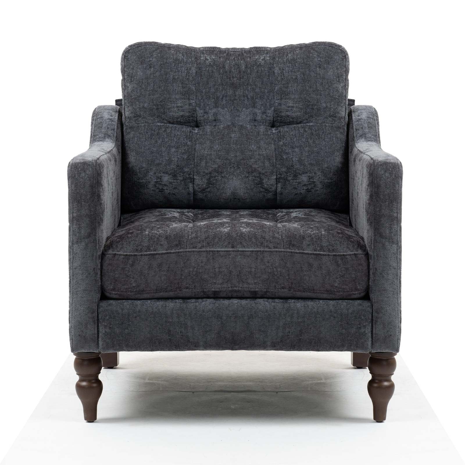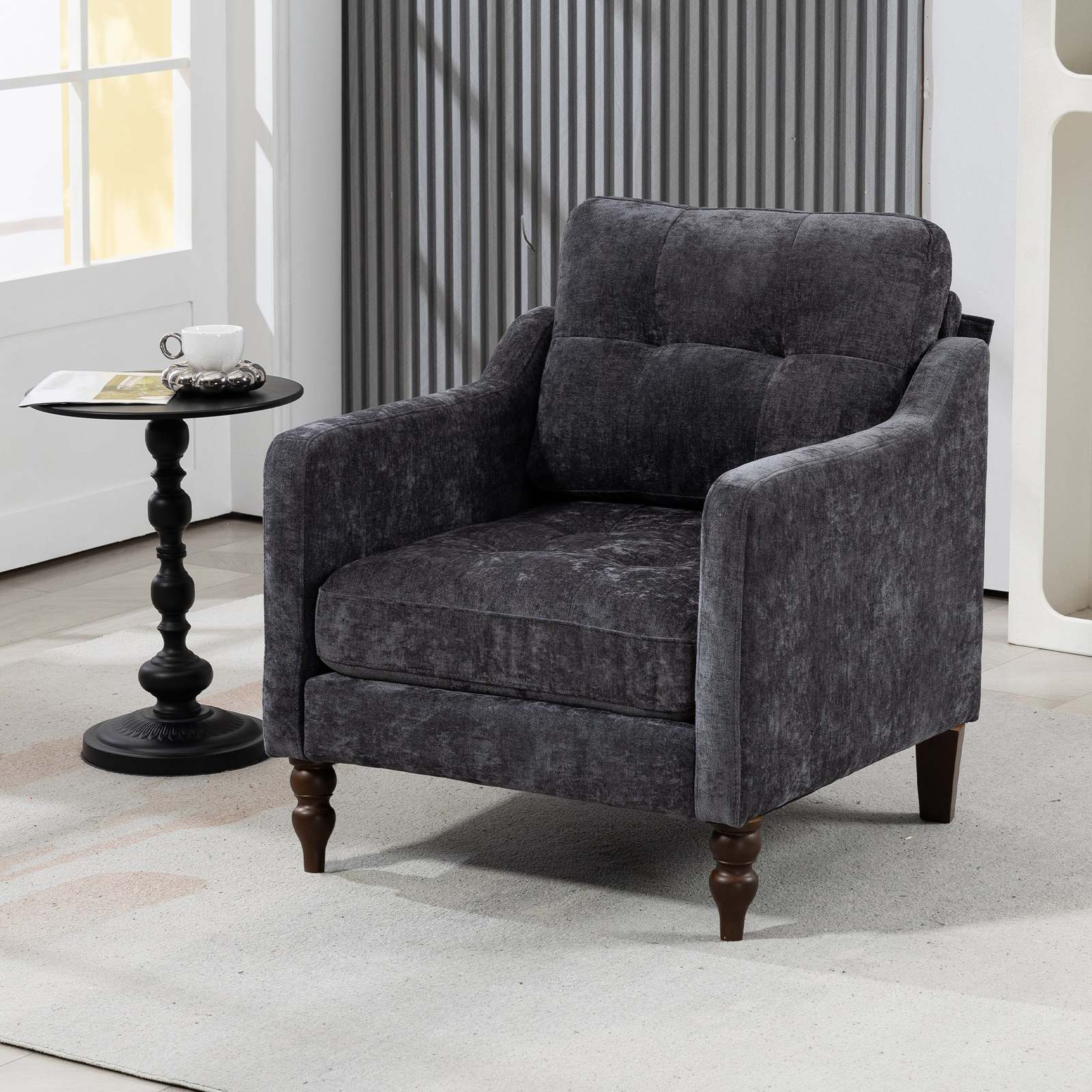 Comfy Chenille Accent Chair w/USB & Storage | Ergonomic Mid-Century