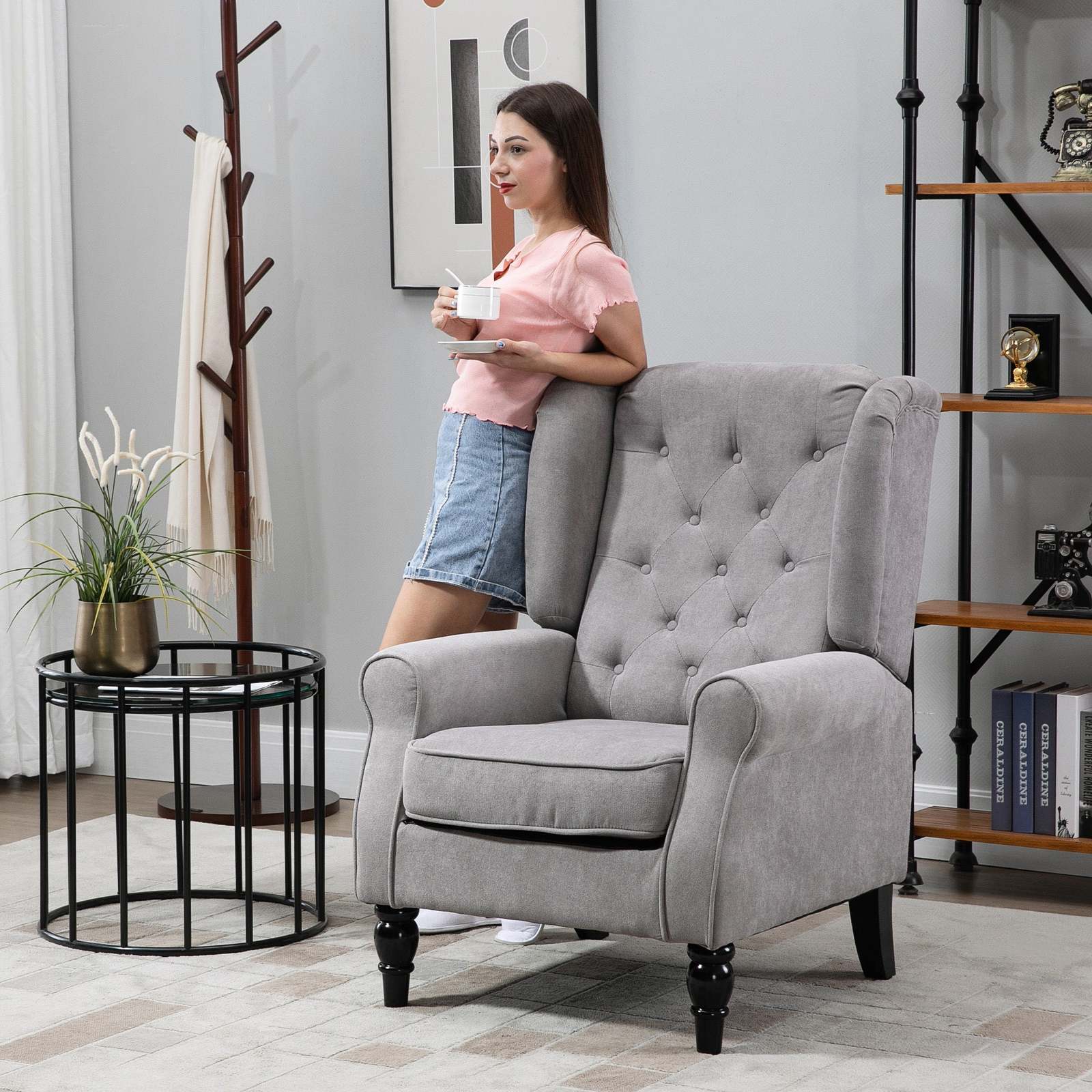 HOMCOM Grey Button-Tufted Wingback Accent and 50 similar items