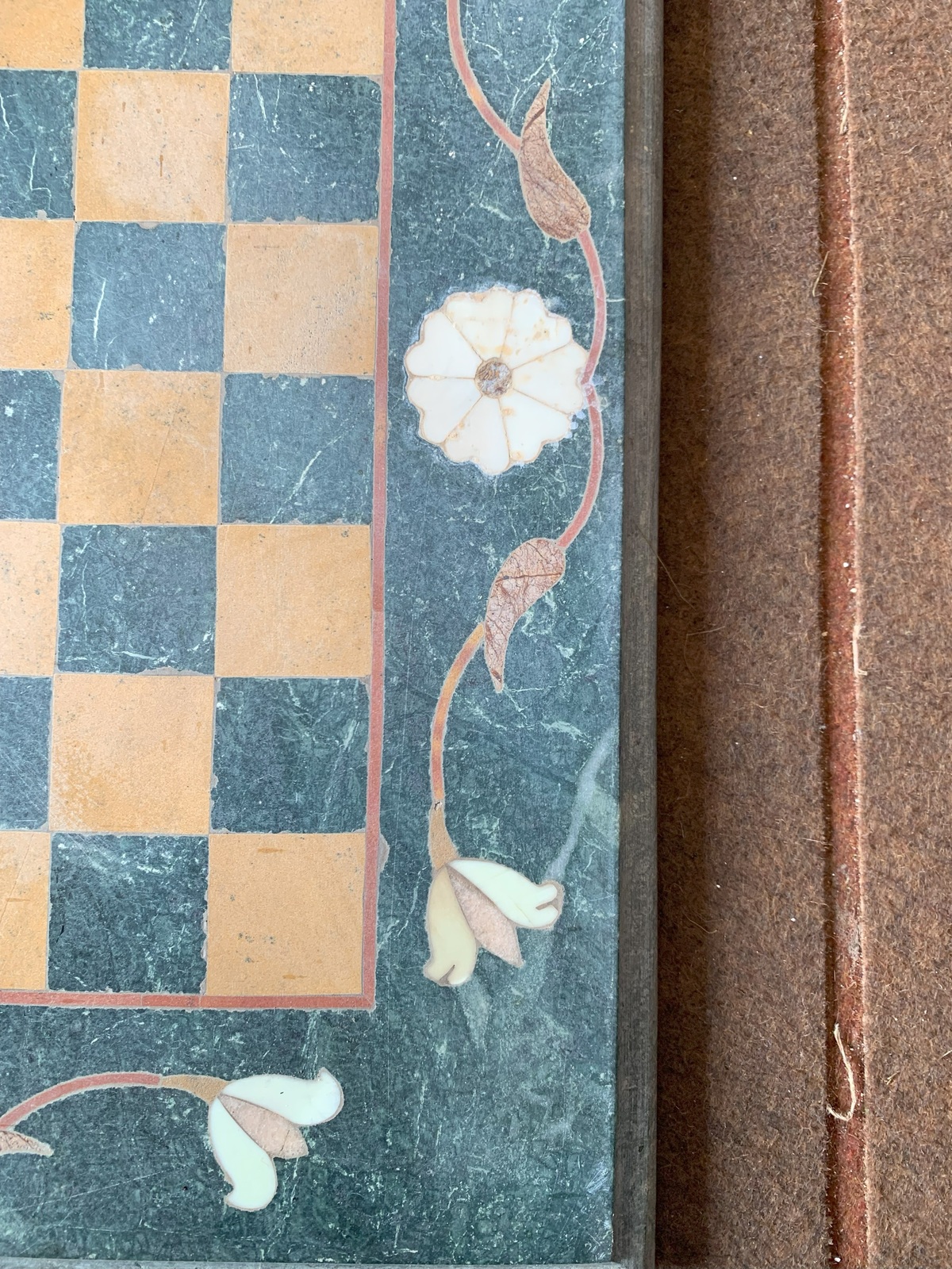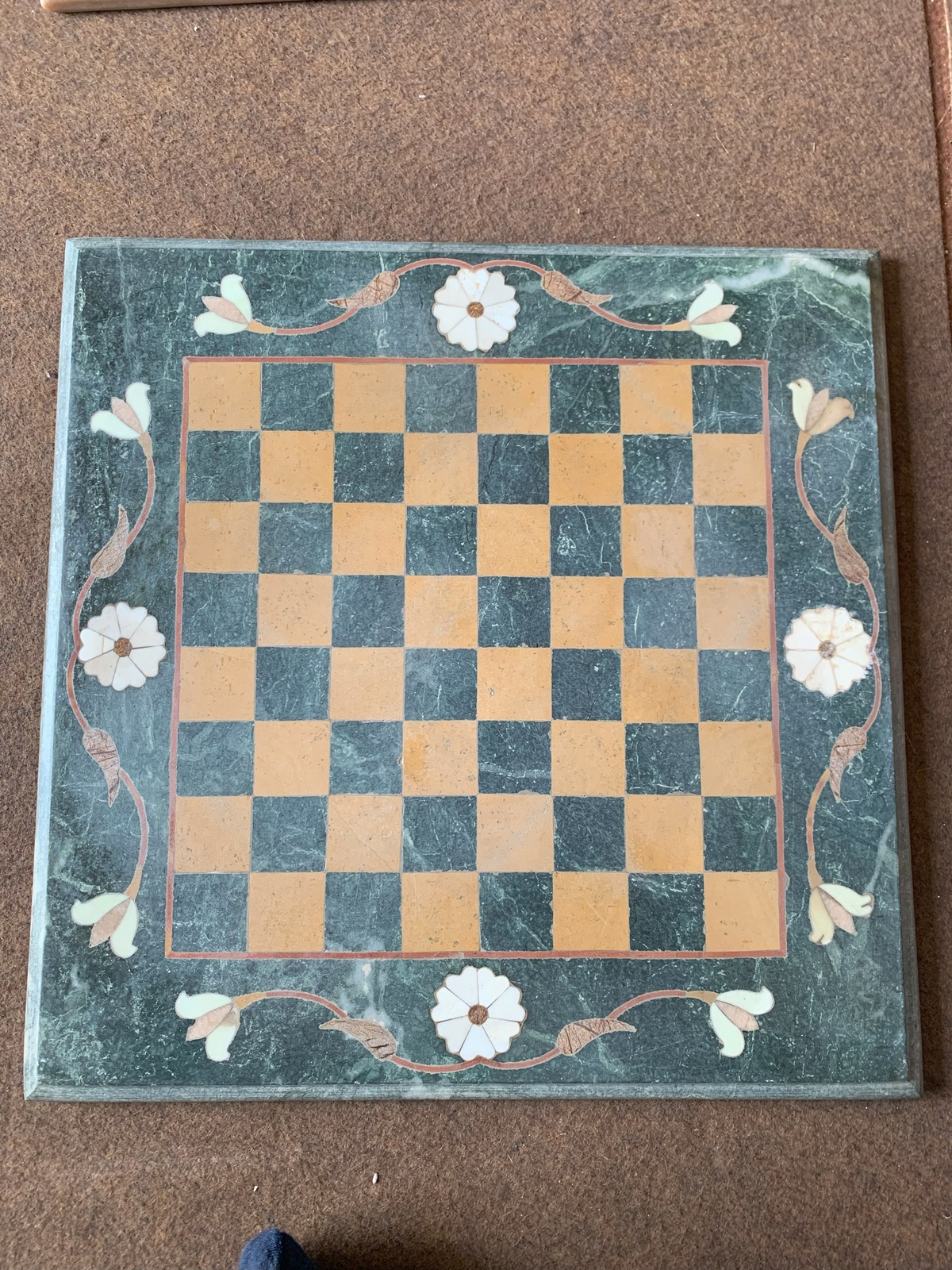 18x18" Green Marble Vintage Pietra Dura marble gem stone inlay Game Table