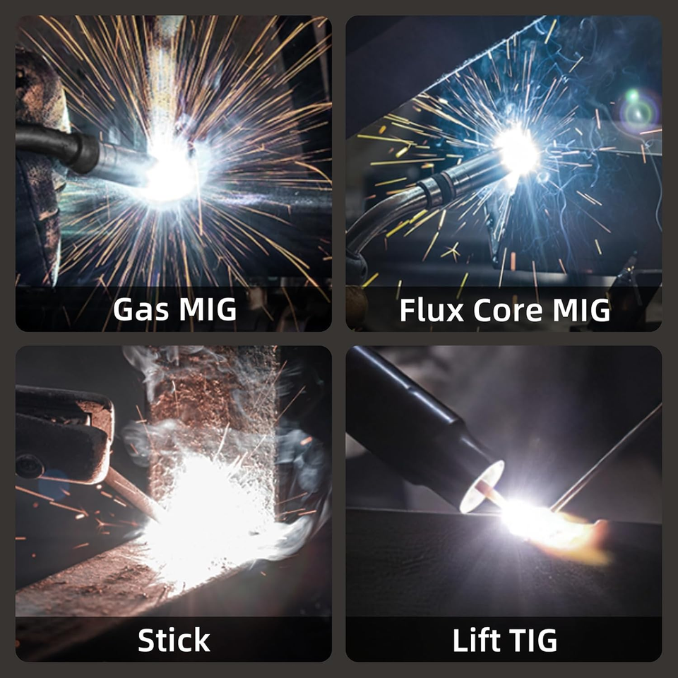 4 IN 1 WELDER: The multi-function welding machine included Gas/Solid Wire MIG(GMAW), Gasless Flux Core MIG(FCAW), Stick/MMA, Lift TIG. (Tig gun not included)