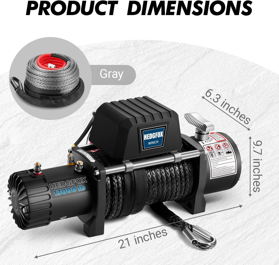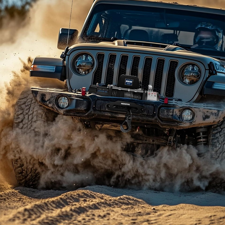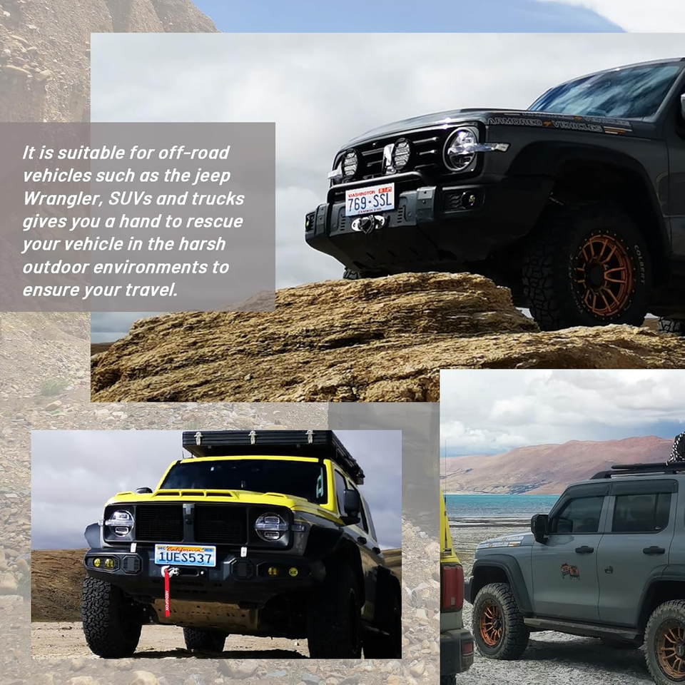 The 13000lbs winch is suitable for Jeep Wrangler, SUVs, Trucks, and Traliers that for extreme environments such as deserts, snow, and mud, meeting a variety of specialized towing needs