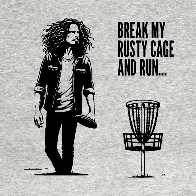 Unleash Your Inner Rock Star And Disc Golf Champ With Our Exclusive \Rusty Cage Disc Golf Tee! This Isn'T Just A T-Shirt; It'S A Tribute To The Epic '90S, A Nod To Grunge Legends, And A Celebration Of Disc Golf ?a All In One The Band Is On Tour And Hitting Your Home Town. During The Day The Band Swaps Their Guitars For Discs, All Set Against A Backdrop Of Lush, Green Fairways. The Lead Is Captured Walking To His Lie, Exuding That Iconic Grunge Attitude, He Knows It'S A Gimme. And Here'S The Kicker - The Basket? It'S Not Just Any Basket. It'S A \Rusty Cage,\ A Whimsical Nod To That 90'S Banger And A Cheeky Twist For Disc Golf Lovers.\nCustom T-Shirt Info:We?re excited to offer a variety of custom T-shirt designs and colors just for you! Sizes range from S to 5XL, perfect for everyone.