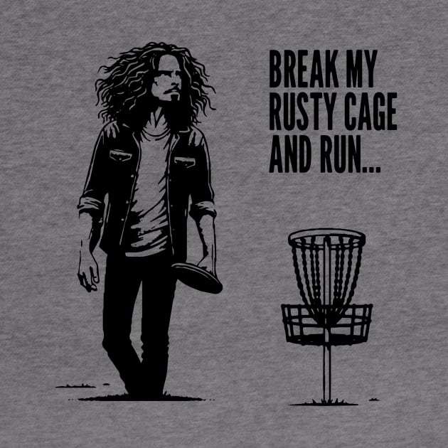 Unleash your inner rock star and disc golf champ with our exclusive 'Rusty Cage Disc Golf tee! This isn't just a t-shirt; it's a tribute to the epic '90s, a nod to grunge legends, and a celebration of disc golf a?? all in one The band is on tour and hitting your home town. During the day the band swaps their guitars for discs, all set against a backdrop of lush, green fairways. The lead is captured walking to his lie, exuding that iconic grunge attitude, he knows it's a gimme. And here's the kicker - the basket? It's not just any basket. It's a 'Rusty Cage,' a whimsical nod to that 90's banger and a cheeky twist for disc golf lovers.\nWe offer a wide variety of custom styles and colors to suit your unique needs! Feel free to contact us for more details
