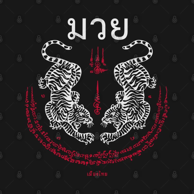 Beautiful Illustration Of A Traditional Tiger Tattoo Talisman From Thailand. Perfect T-shirt for any lover of Muay Thai Kickboxing and of Thailand's beautiful art, culture, and history.\nWe offer a wide variety of custom styles and colors to suit your unique needs! Feel free to contact us for more details