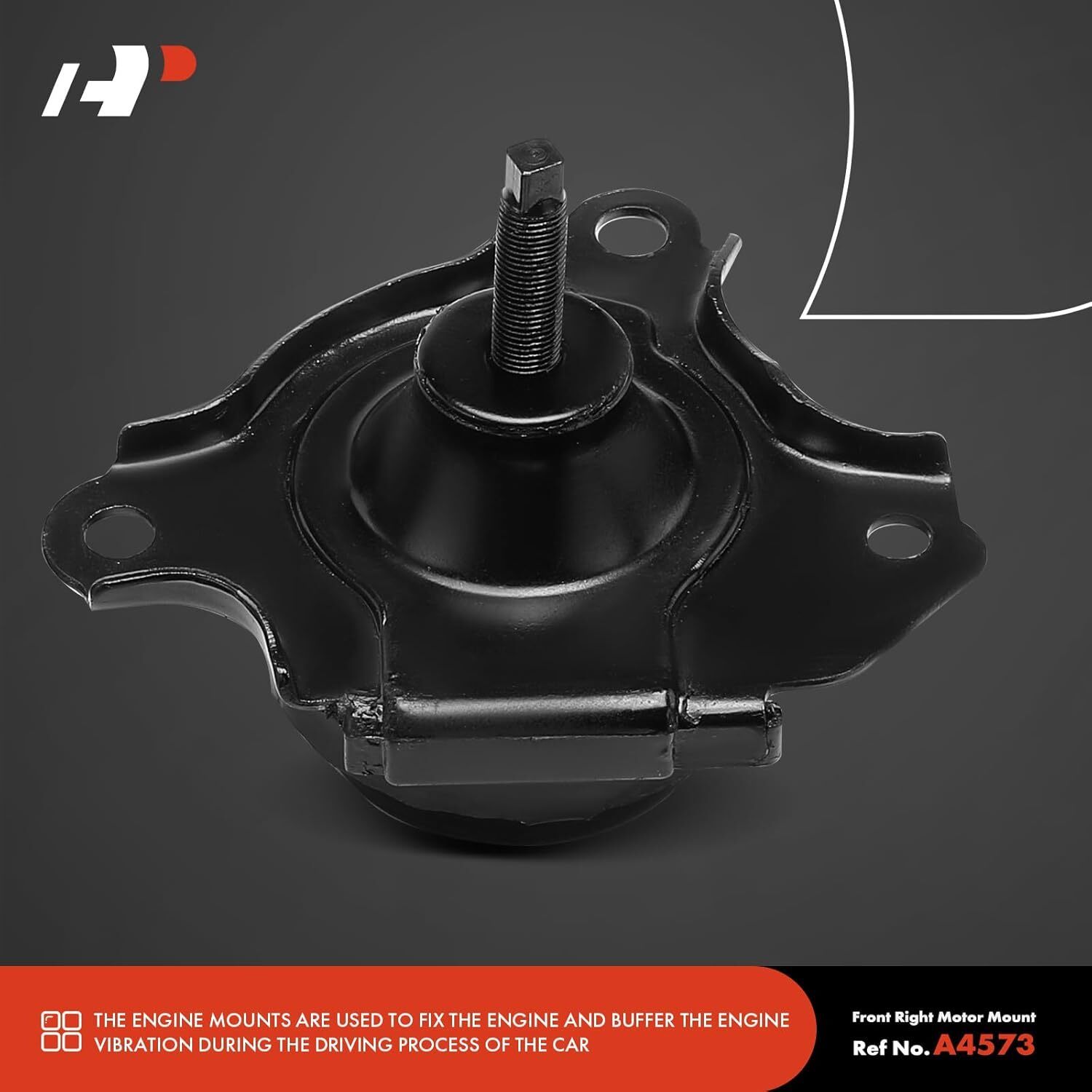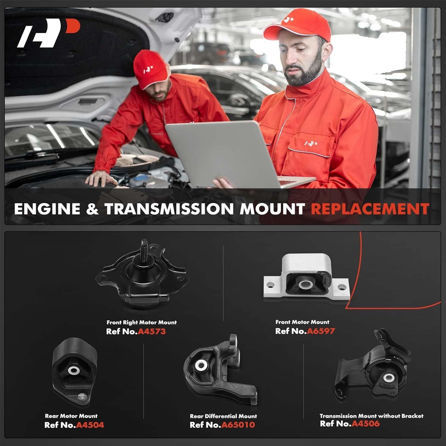 [Vehicle Fitment]: Compatible with Honda Element 2003-2011 L4 2.4L---4WD, without Bracket, Automatic Transmission [Reference Number]: A4573, A65010, A4504, A4506, A6597, 9445, 9879, 9168, 9205, 9066, EM9445, EM5871, EM9168, EM9205, EM9066, 50821SCVA02, 50721S5C003, 50810S7D003, 50810S9A013, 50840S6M981, 50840S7C980, 50840SCVA81 [Package Included]: 1 x Front Right Motor Mount, 1 x Front Motor Mount,1 x Rear Motor Mount, 1 x Rear Differential Mount, 1 x Transmission Mount without Bracket Part [Product Description]: These engine mounts undergo harsh testing. Superior materials are utilized along with rigorous quality control standards to meet or exceed OE specifications [Buy with Confidence]: A-Premium offers a one-year unlimited-mileage guarantee on our meticulously crafted engine mount kit. We offer a wide variety of automotive accessory categories, ensuring that you can hit the road with peace of mind.