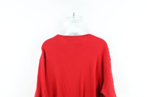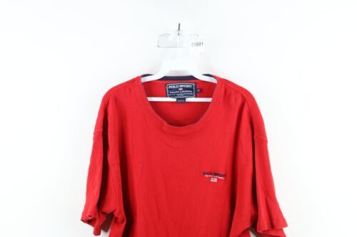 Vtg 90s Polo Sport Ralph Lauren Mens 2XL Spell Out Flag Ribbed Knit T-Shirt Red