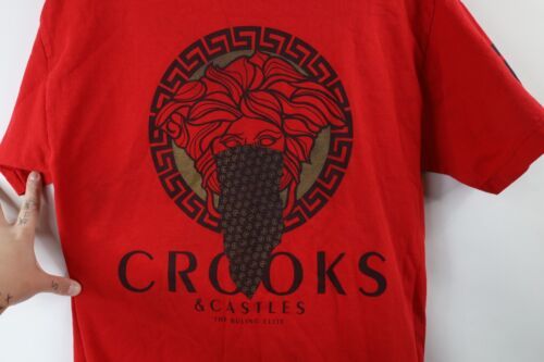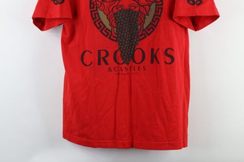 Crooks Castles Mens Medium Streetwear Faded Spell Out Medusa Head T-Shirt Red