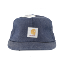 NOS Vintage 80s Carhartt Spell Out Box Logo Patch Denim Trucker Hat Snapback USA