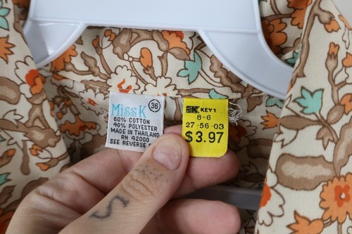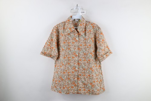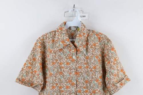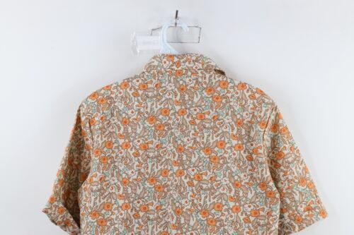 Deadstock Vintage 60s 70s Streetwear Womens 36 Looped Collar Flower Button Shirt