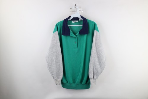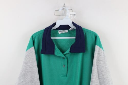 Vintage 90s Eddie Bauer Sport Womens Small Faded Color Block Henley Sweatshirt