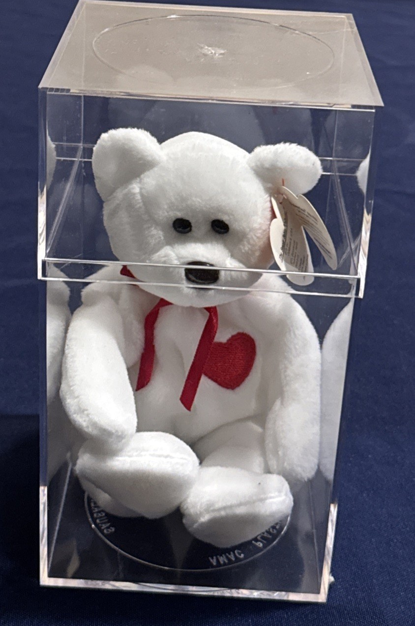 TY Beanie Baby Valentino the Bear 1993/94 Brown Nose w/Tag Errors (RARE) In Case