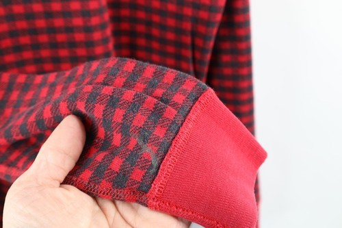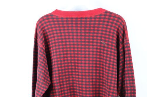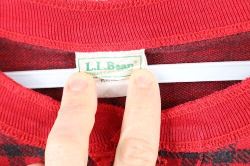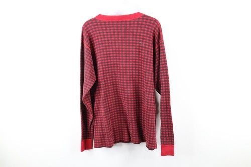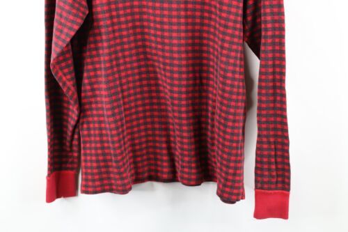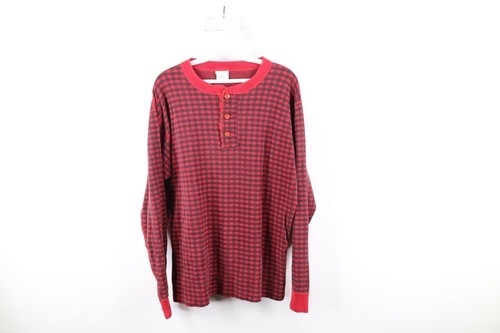 Vintage 90s LL Bean Mens Large Faded Long Sleeve Henley T-Shirt Red Plaid USA