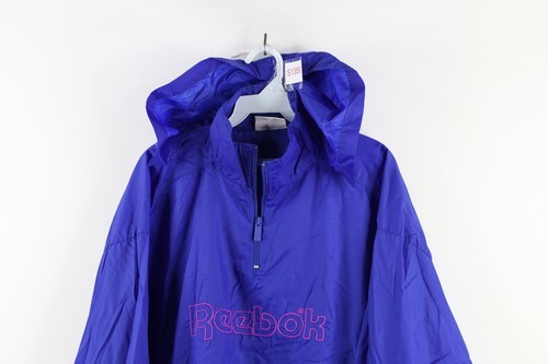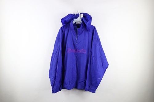 Vintage 90s Reebok Mens Large Distressed Spell Out Half Zip Windbreaker Jacket