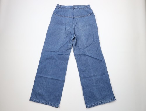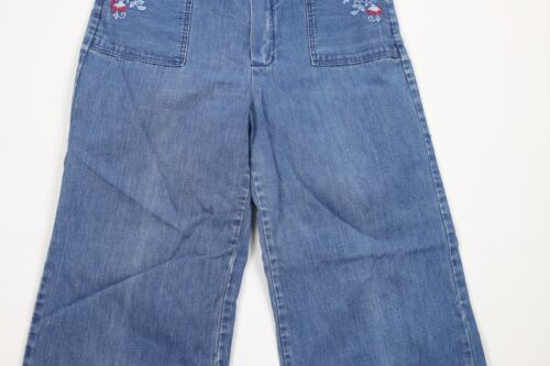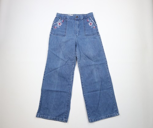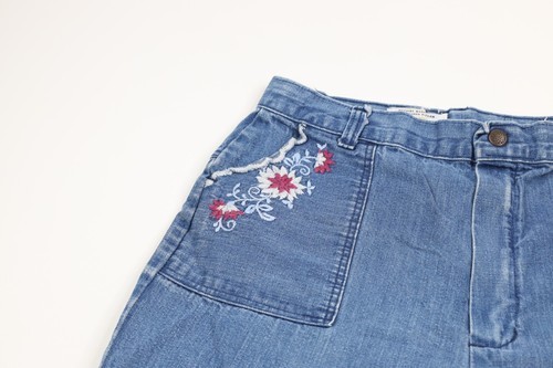 Vintage 70s Streetwear Womens 28 Faded Flower Embroidered Bell Bottoms Jeans USA