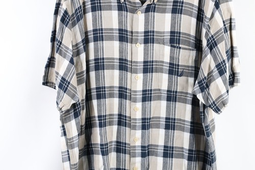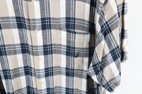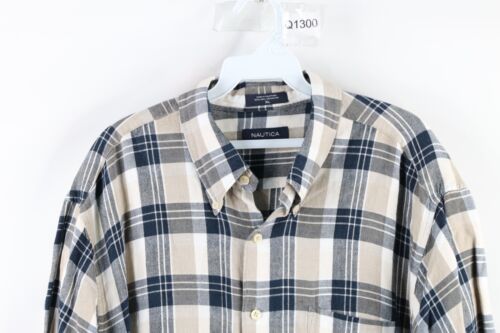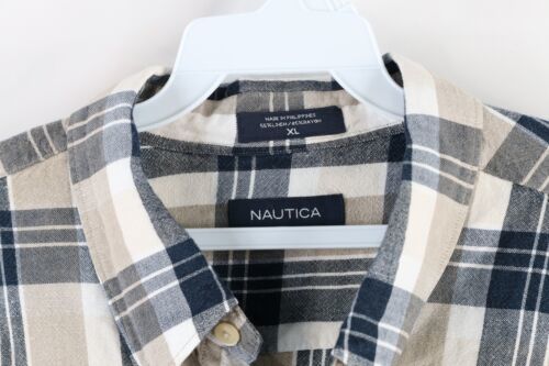Vintage 90s Nautica Mens Size XL Faded Linen Blend Collared Button Shirt Plaid