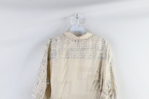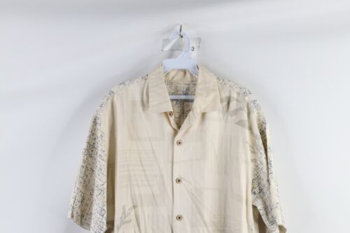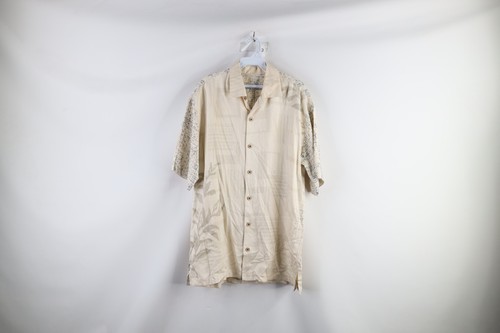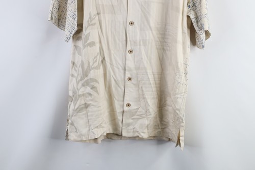 Vintage Tommy Bahama Mens Large Distressed Silk Hawaiian Button Shirt Cream