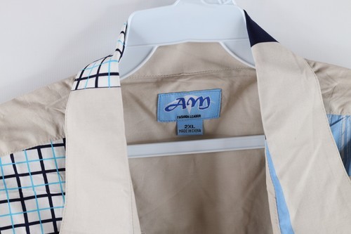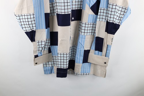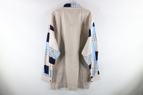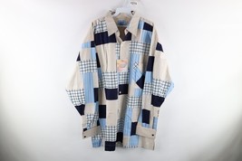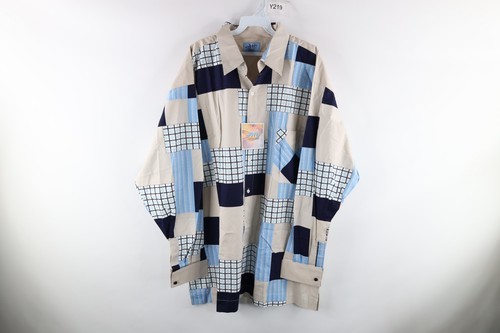 NOS Vintage Streetwear Hip Hop Mens 2XL Checkered Plaid Patchwork Button Shirt