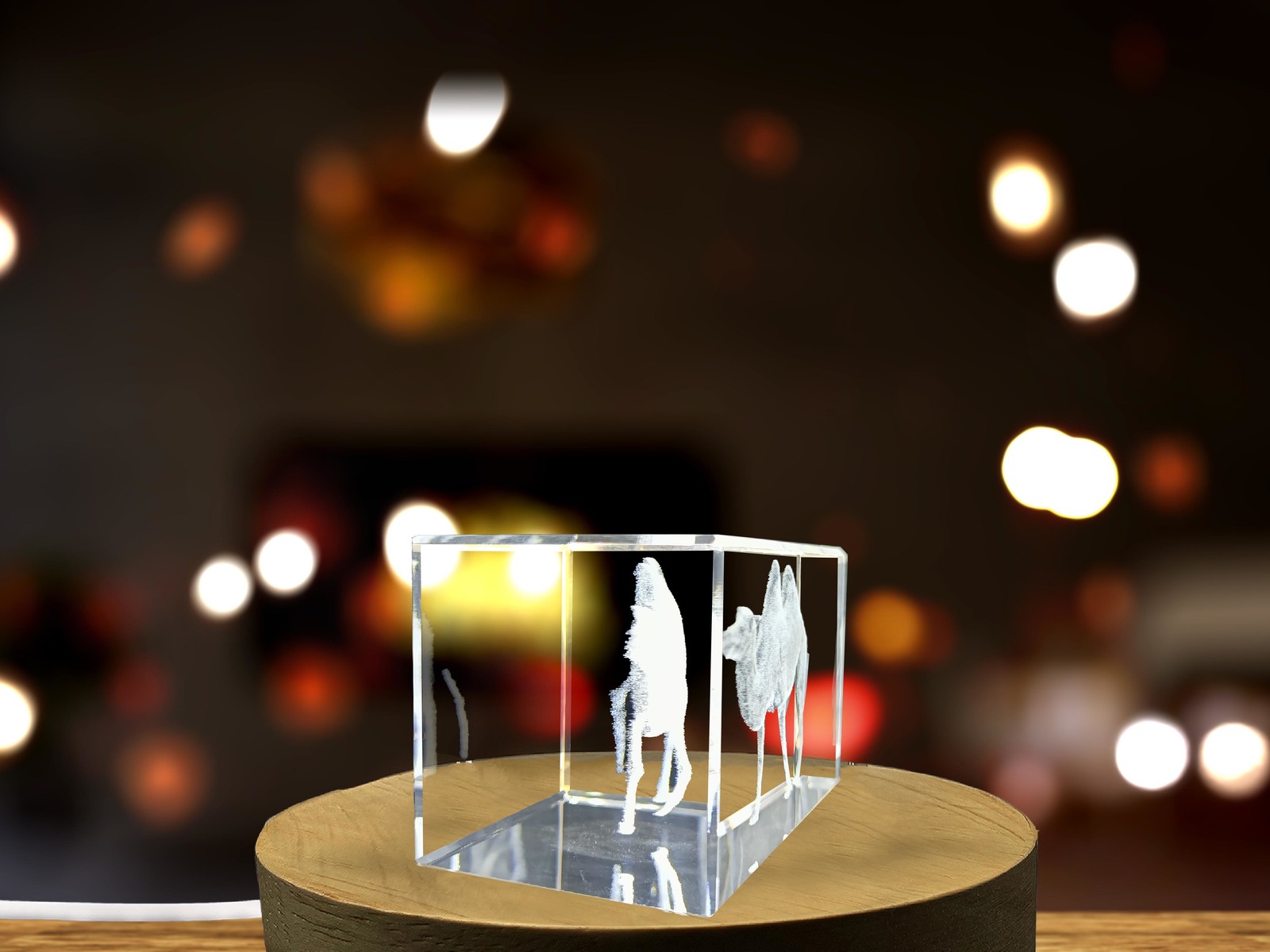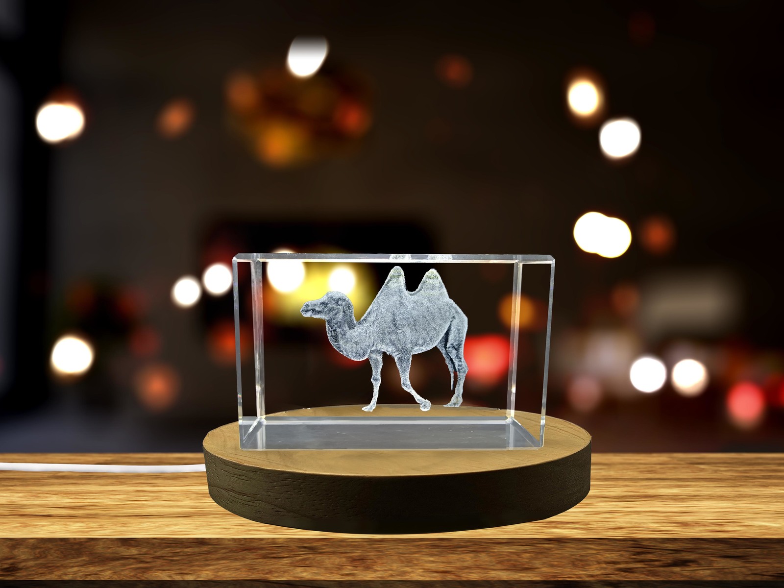 LED Base included | Stunning Wild Bactrian Camel 3D Engraved Crystal Unique