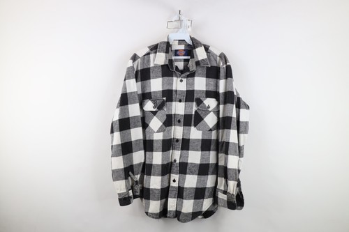Vintage 90s Dickies Mens Large Distressed Heavyweight Flannel Button Shirt Plaid