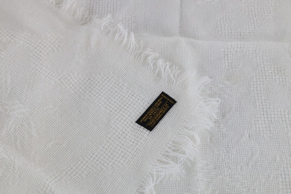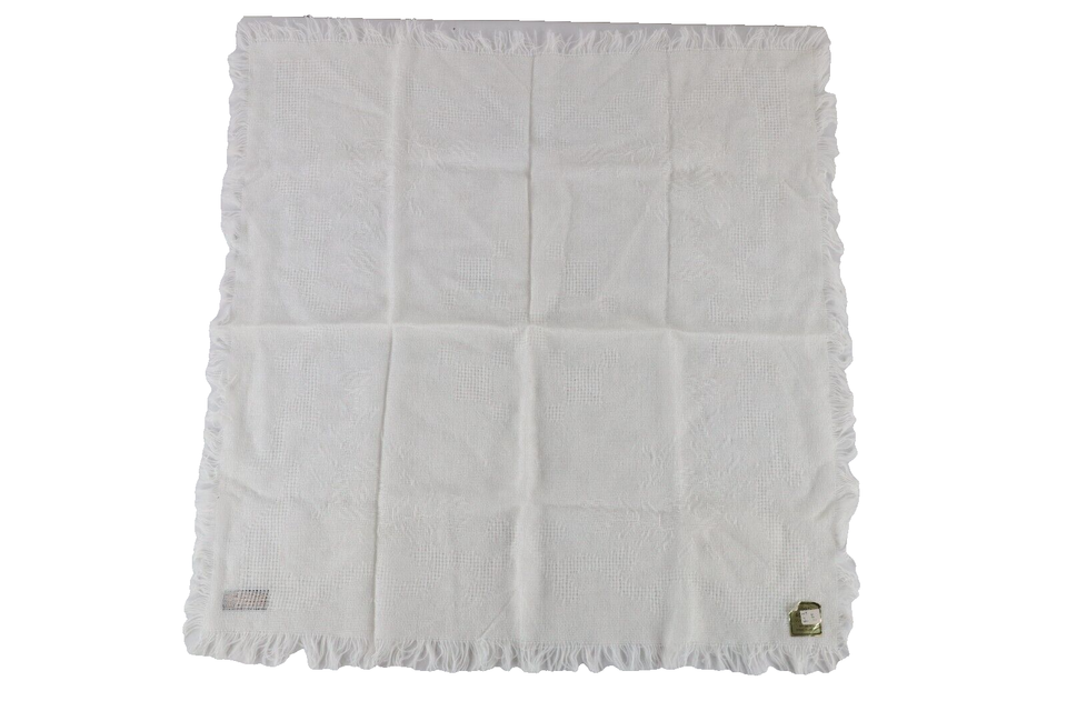 Deadstock Vintage 70s Fringed Crochet Knit Bandana Scarf Wrap White Japan