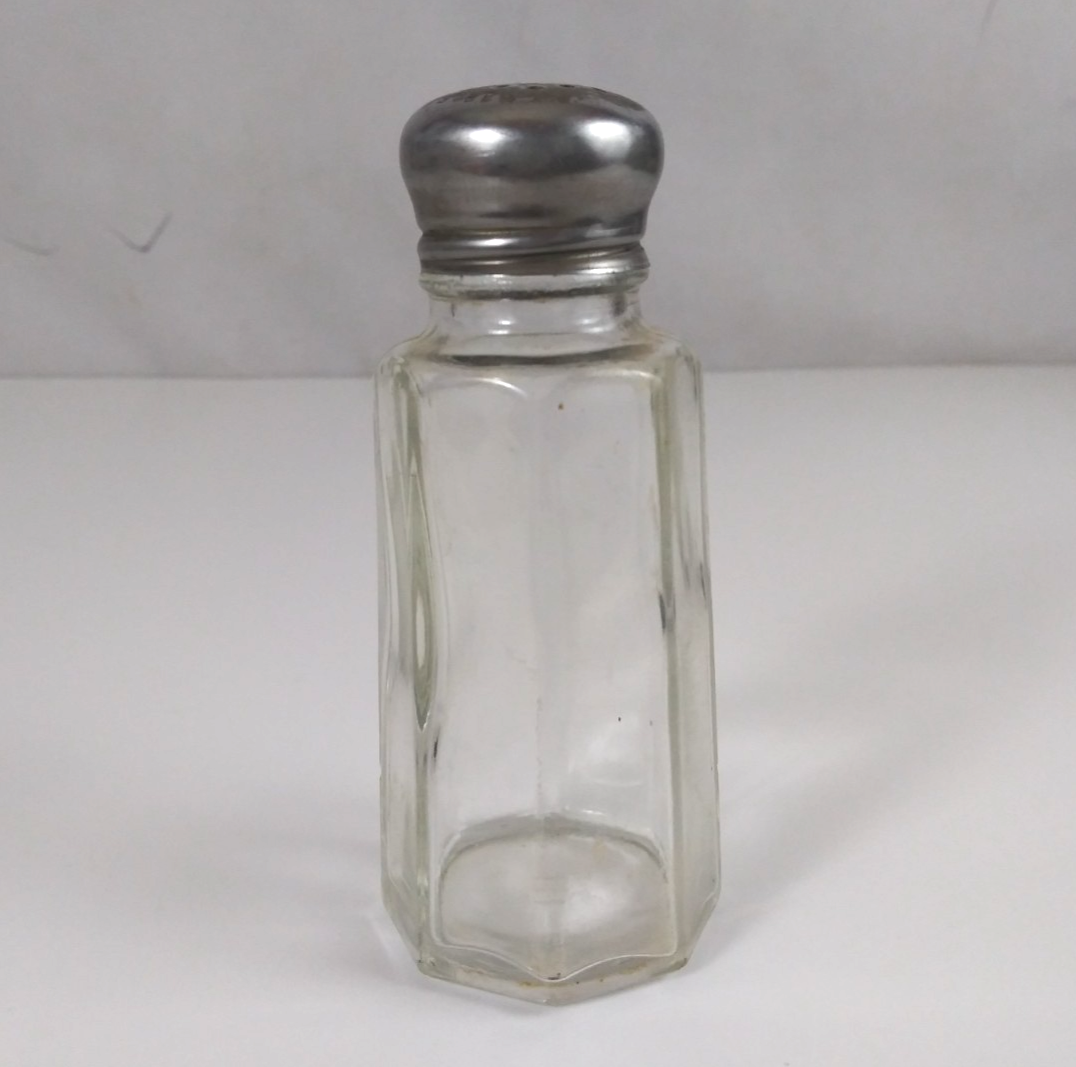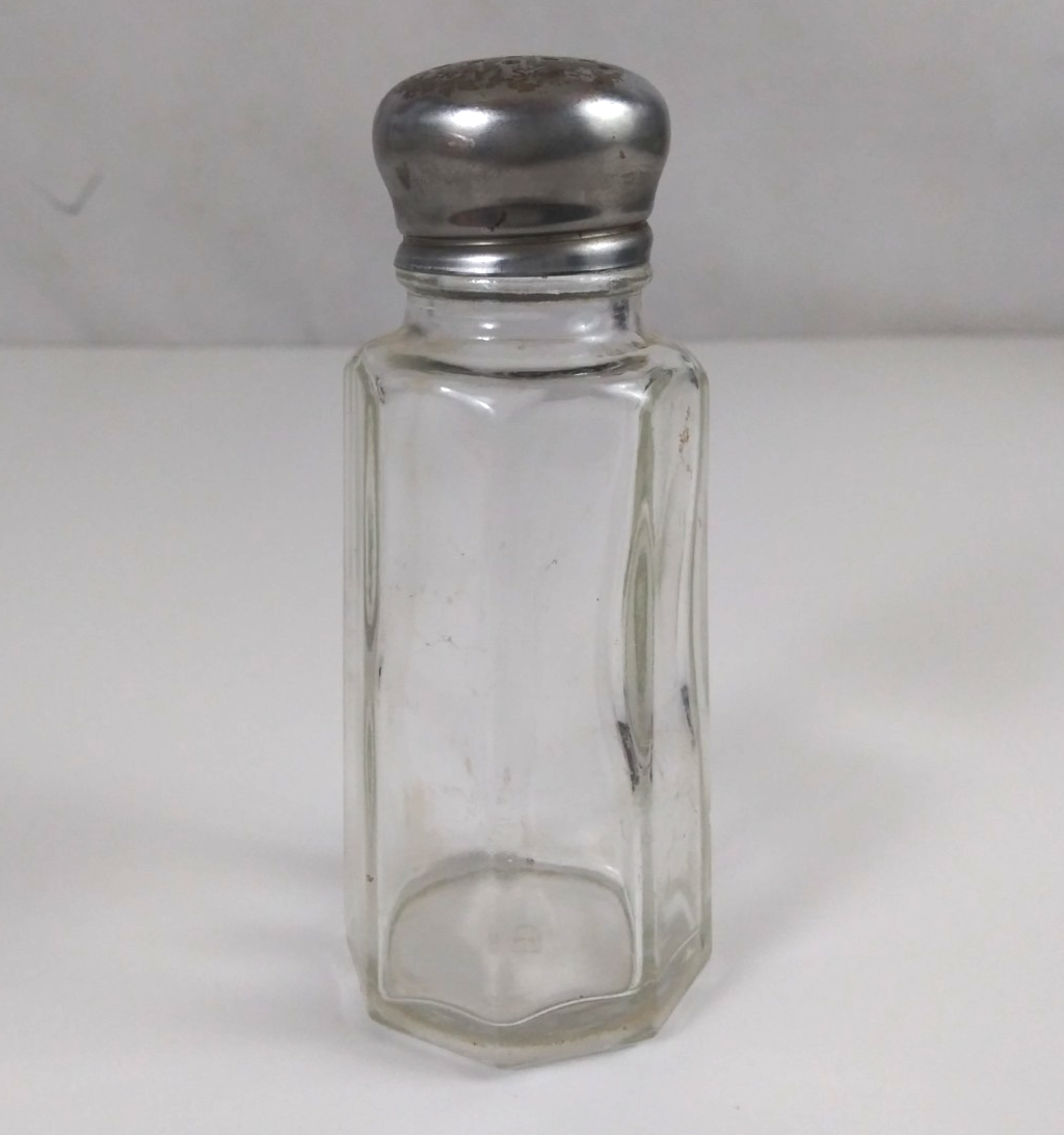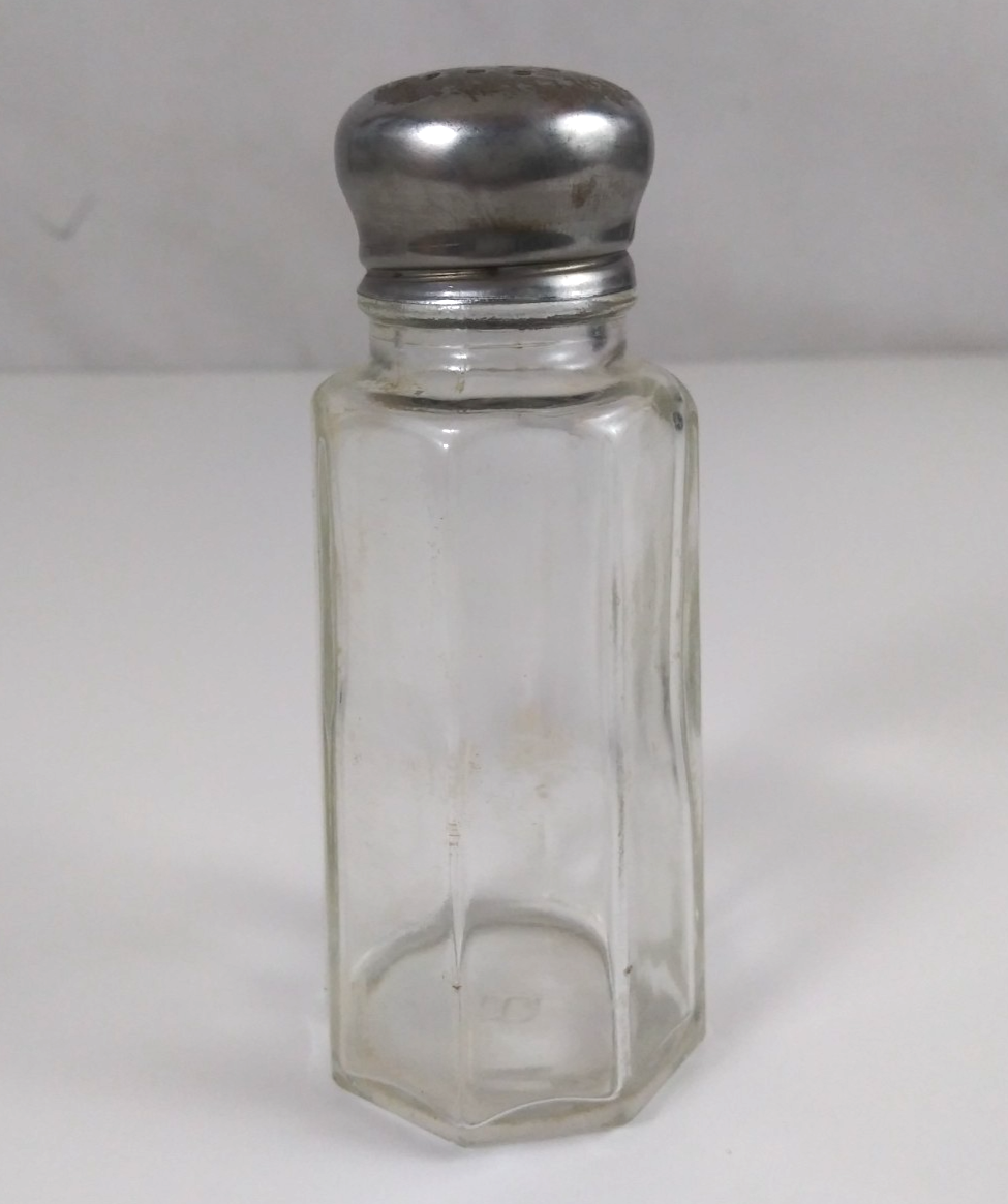 This is for a Vintage Octagon Clear Glass With Stainless Steel Lid Salt Pepper Shakers.