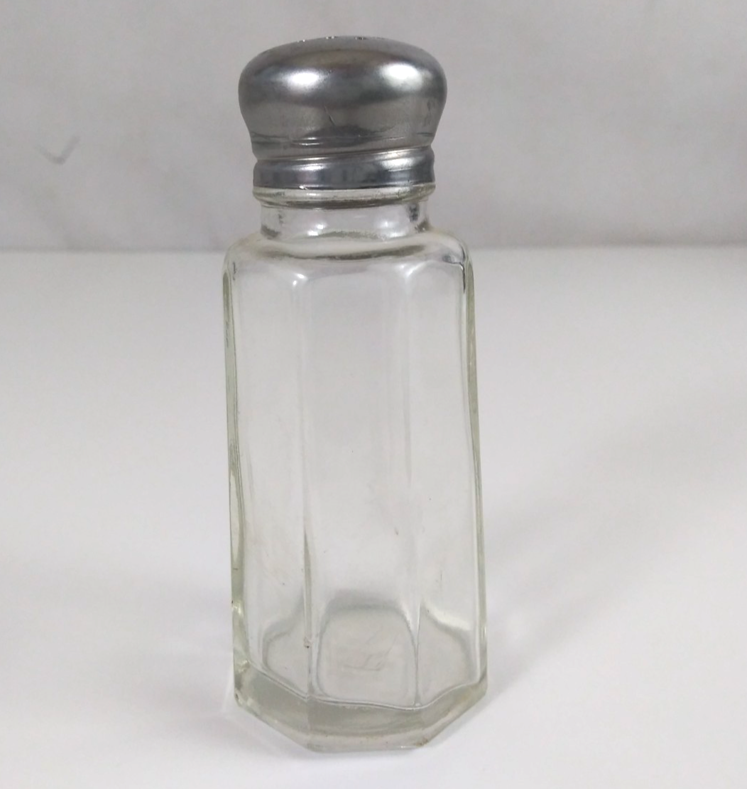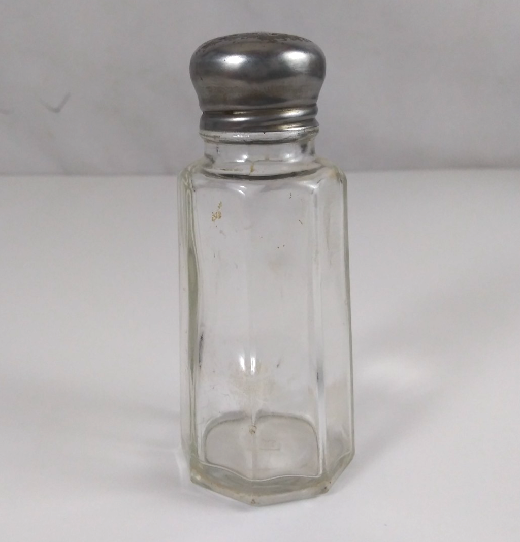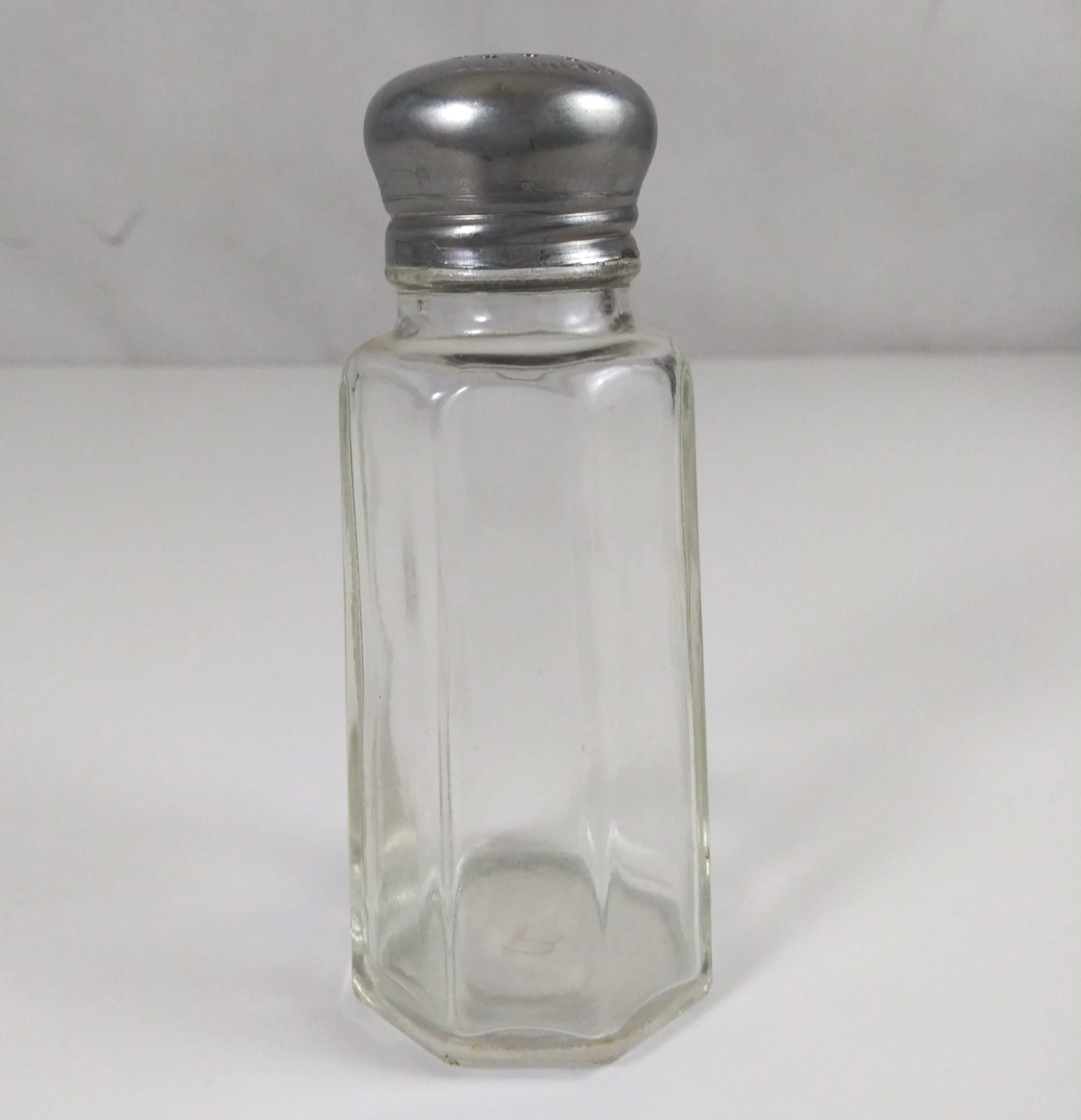 This is for a Vintage Octagon Clear Glass With Stainless Steel Lid Salt Pepper Shakers.