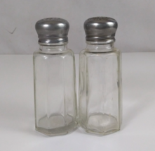 Vintage Octagon Clear Glass With Stainless Steel Lid Salt & Pepper Shakers