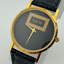 Vintage ISW Swiss Parts Quartz Watch Unisex Gold Tone Black Leather New Battery