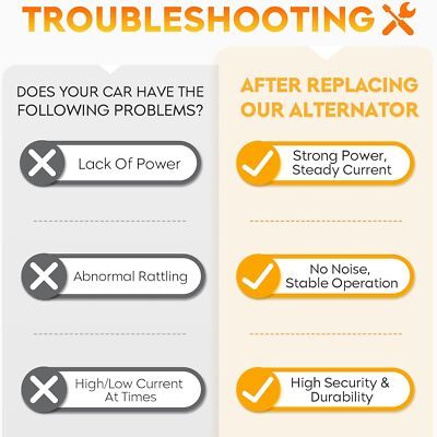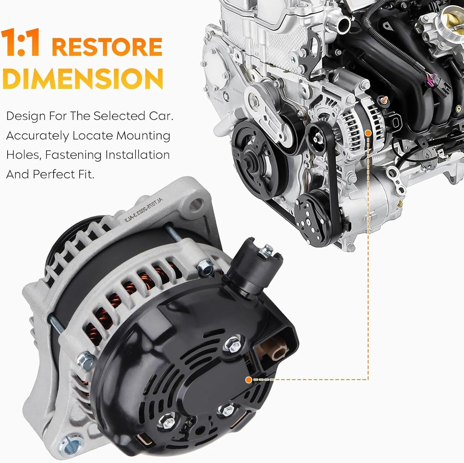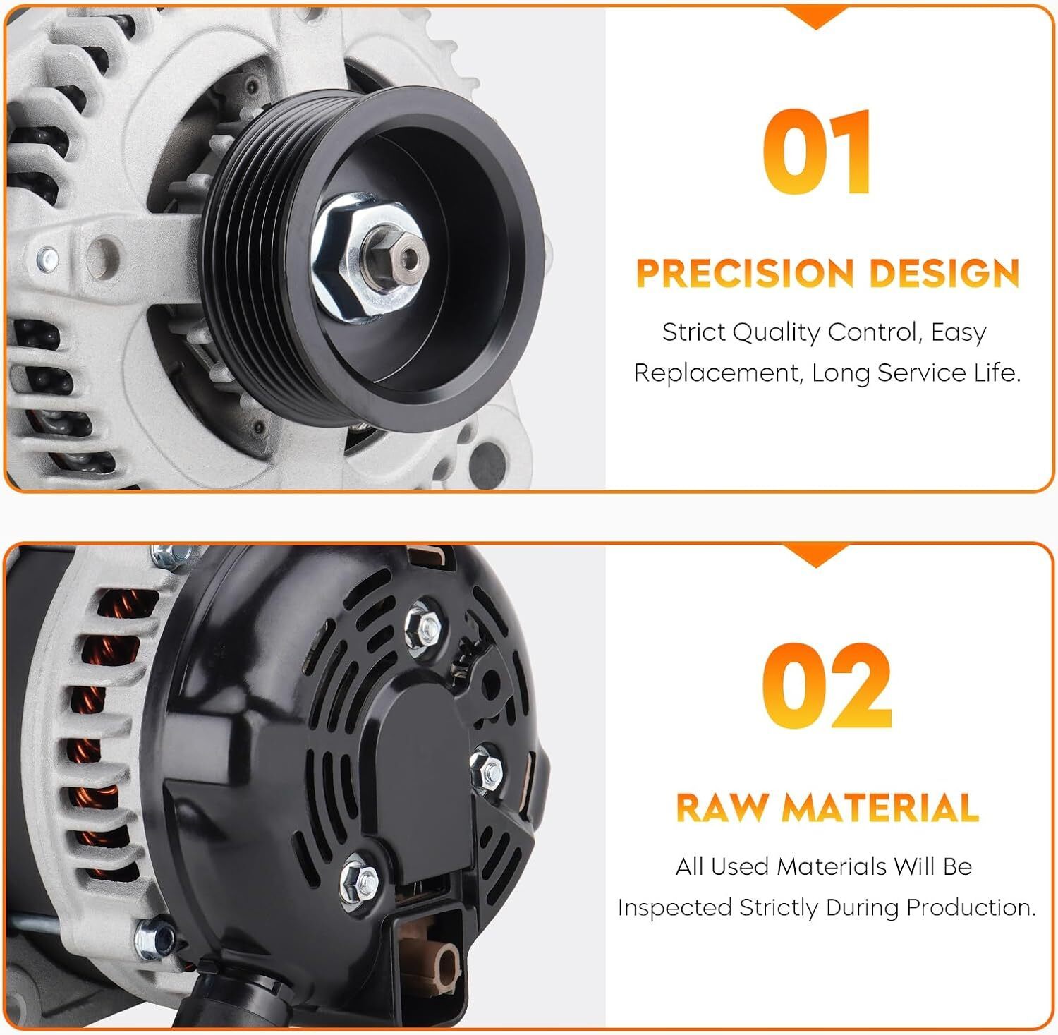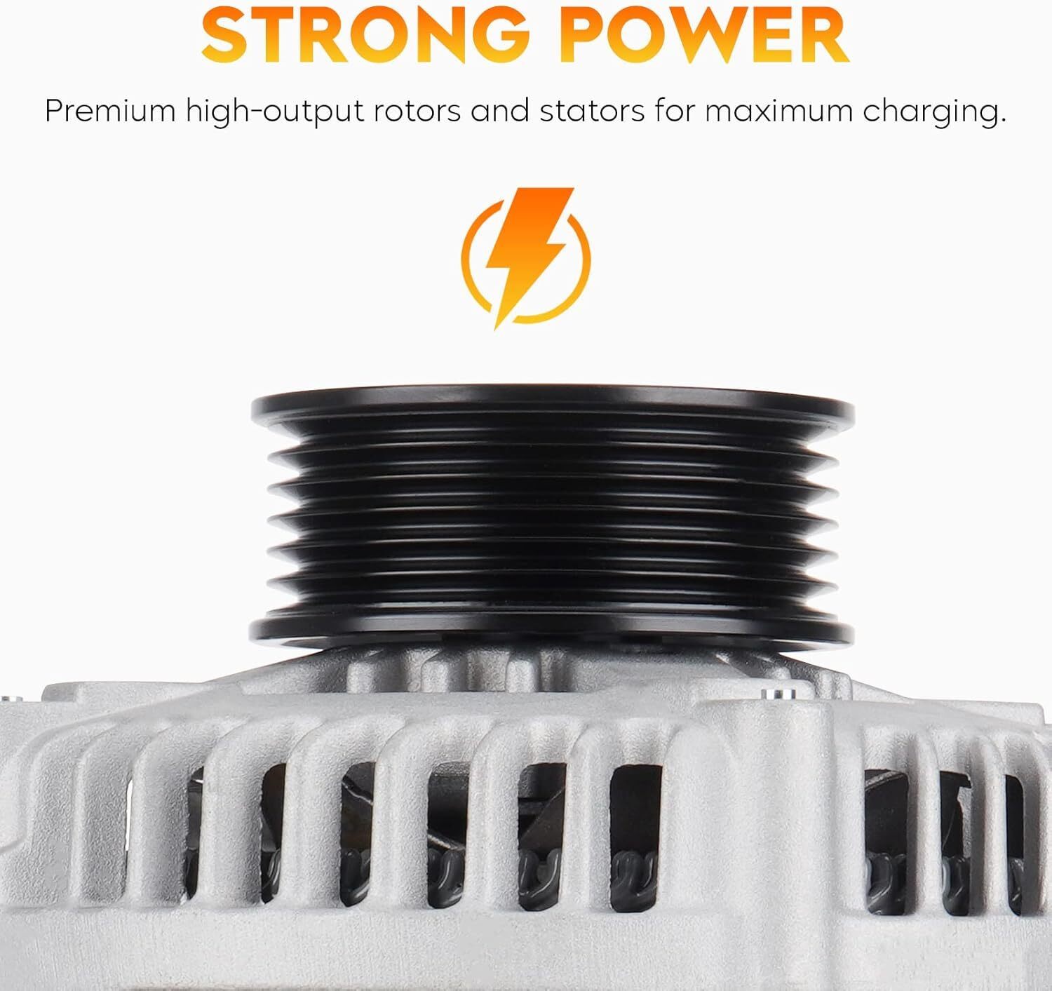 Compatible with: for Acura RDX V6 3.5L 2016 2017 2018, for Honda Accord V6 3.5L 2013 2014 2015 2016 2017, for Crosstour V6 3.5L 2013 2014 2015 Replace for Part Number: 104211-8300, 11670, 290-6314, 31100-5G0-A02, 31100-5G0-A02RM Specs: Voltage: 12V; Amperage: 135A; Rotation: CW (Clockwise); Pulley Class: S6; Condition: New Premium Alternators: Alternators are tested by high thermal environment and high power demand to ensure product quality and durability. Precision Design: All dimensions and contact points of the alternator are rigorously measured to ensure precision and ease of direct mounting.