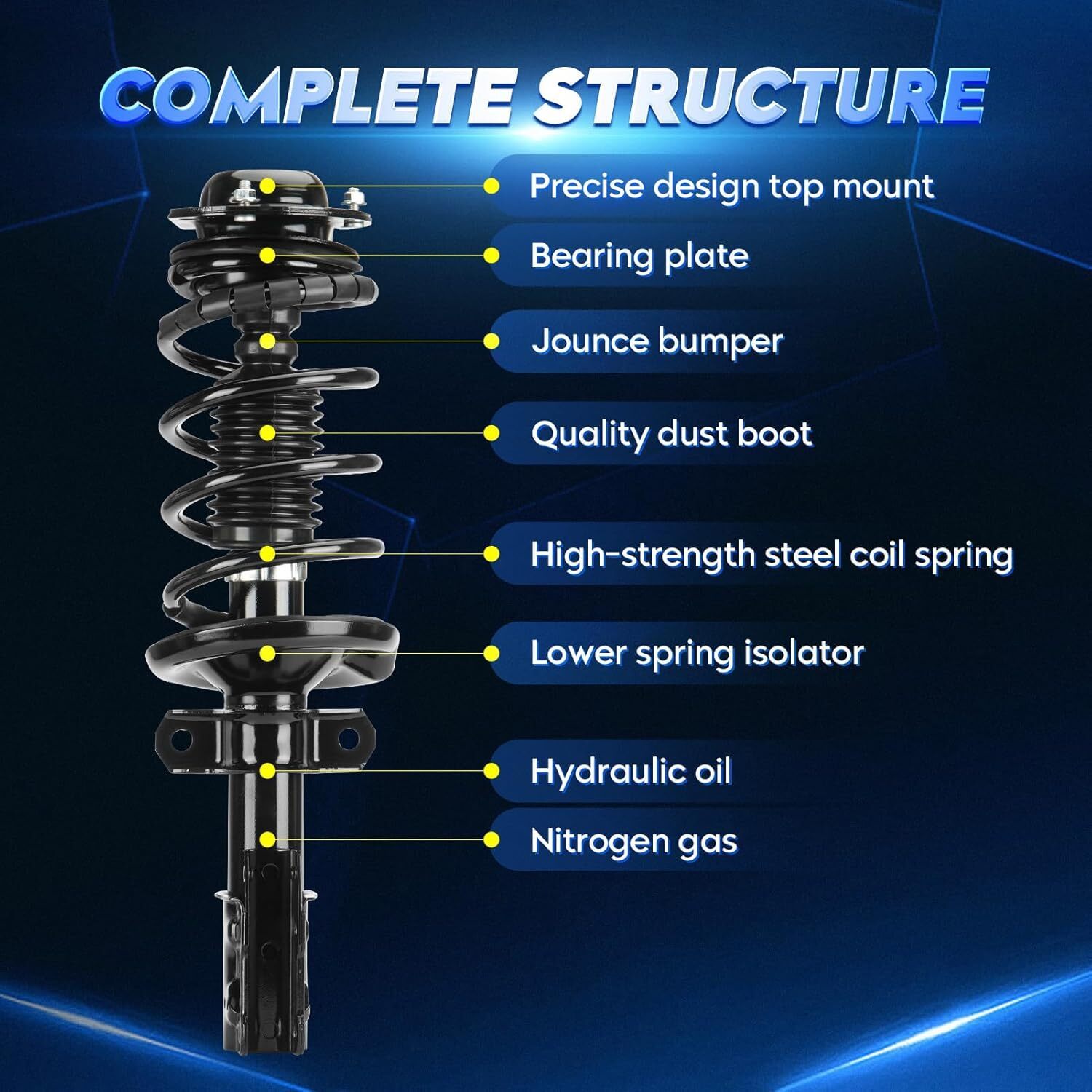 Compatible with: for Chevy Cobalt 2005-2010, for HHR 2006-2011, for Pontiac Pursuit 2005-2006, for G5 2007-2009 Replace for Part Number: Replace 172179L 172179R Kit Includes: 1x front left strut shock assembly with coil spring, 1x front right strut shock assembly with coil spring Inflatable Design: Greater damping for greater work reliability; High-pressure gas and oil are separated by a floating piston, eliminating oil emulsification Quality Assurance: 12-month warranty! tested before shipping