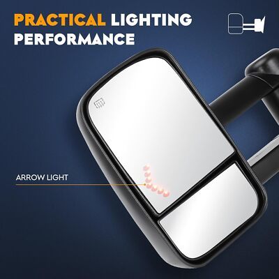 Power Towing Mirrors for Chevy GMC 2007-2013 Avalanche Silverado 1500 3500, Suburban 1500 2500, 07-2014 Sierra 2500 HD Yukon Tahoe Heated with Arrow Light Manual Folding Telescoping Pair