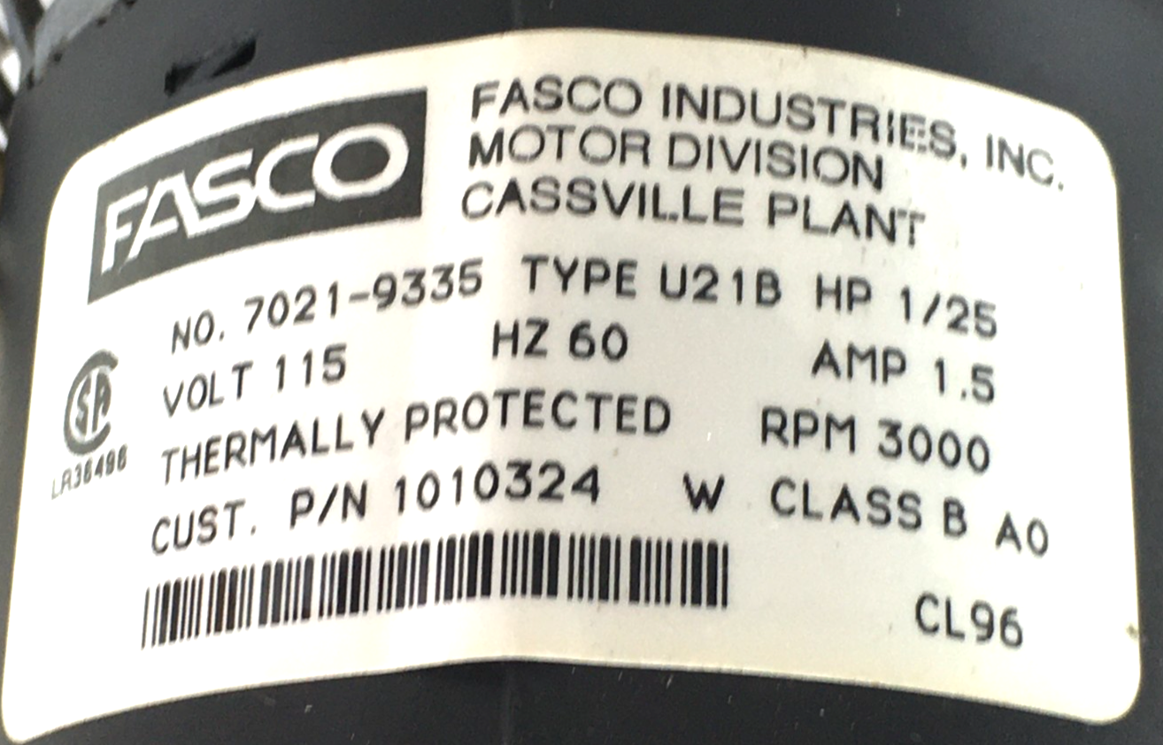 This is FASCO 7021-9335 Draft Inducer Blower Motor Assembly 1010324 115V 1/25HP 3060 RPM used part.