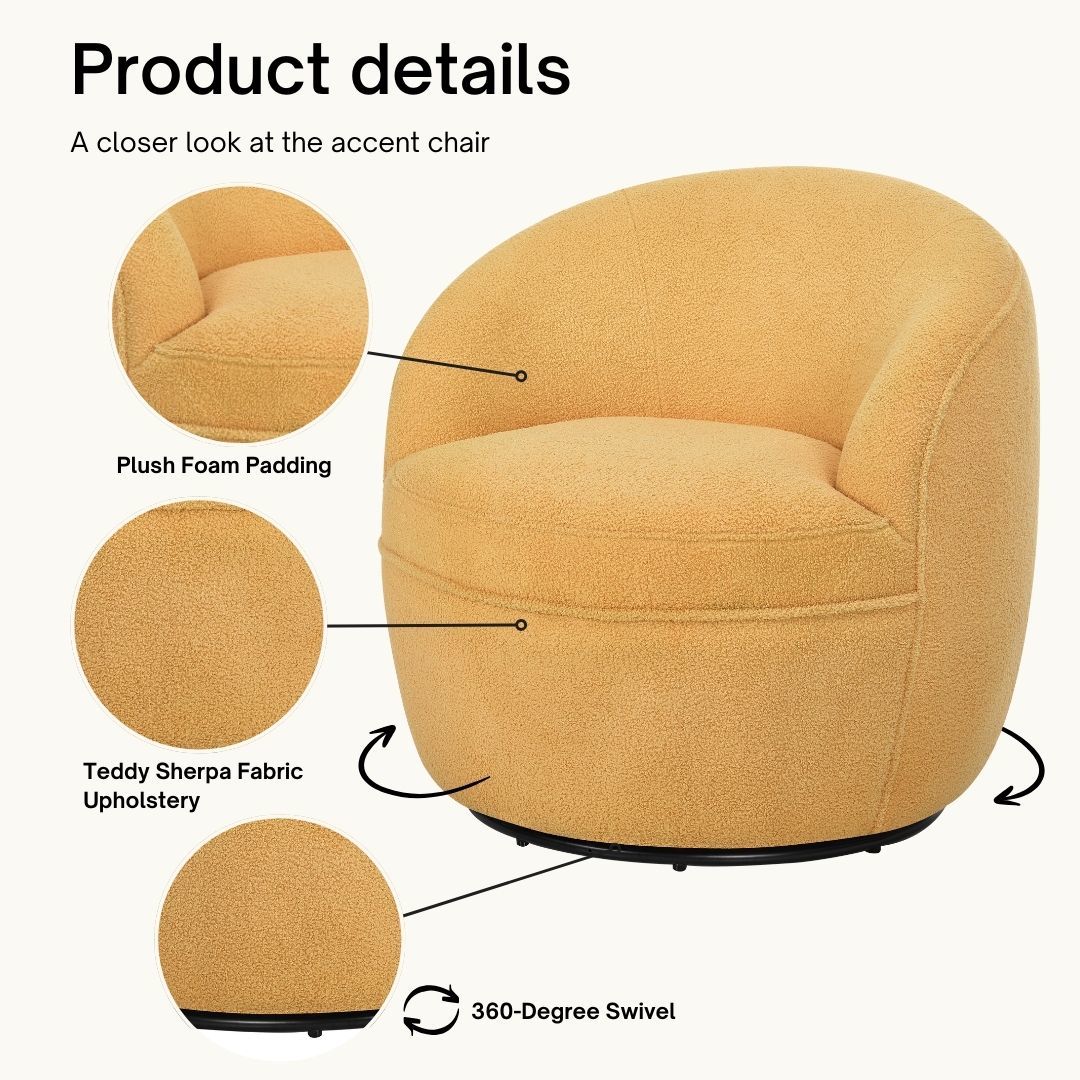 Galleria 360 Swivel Teddy Sherpa Barrel Chair-Yellow