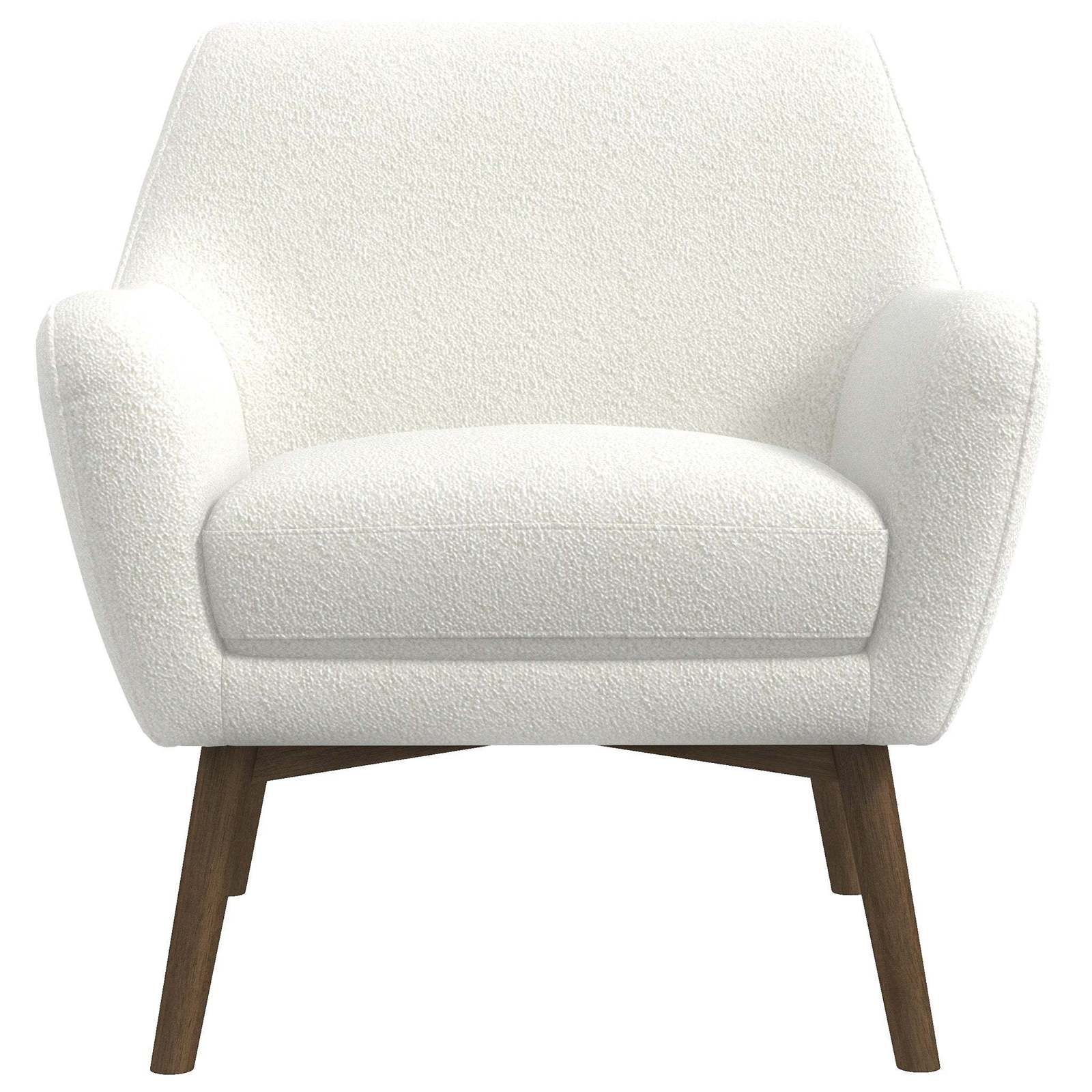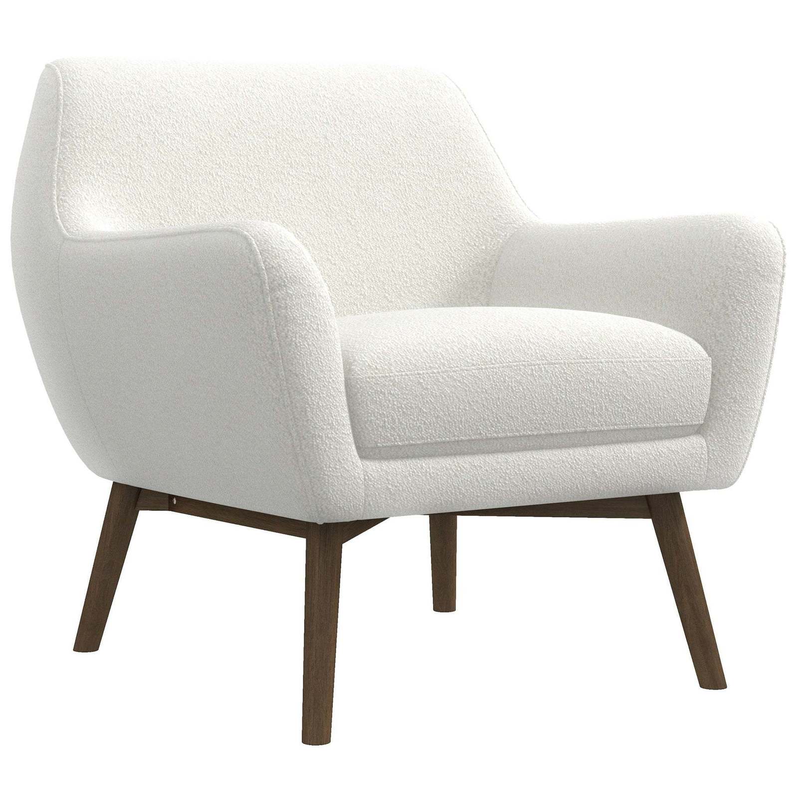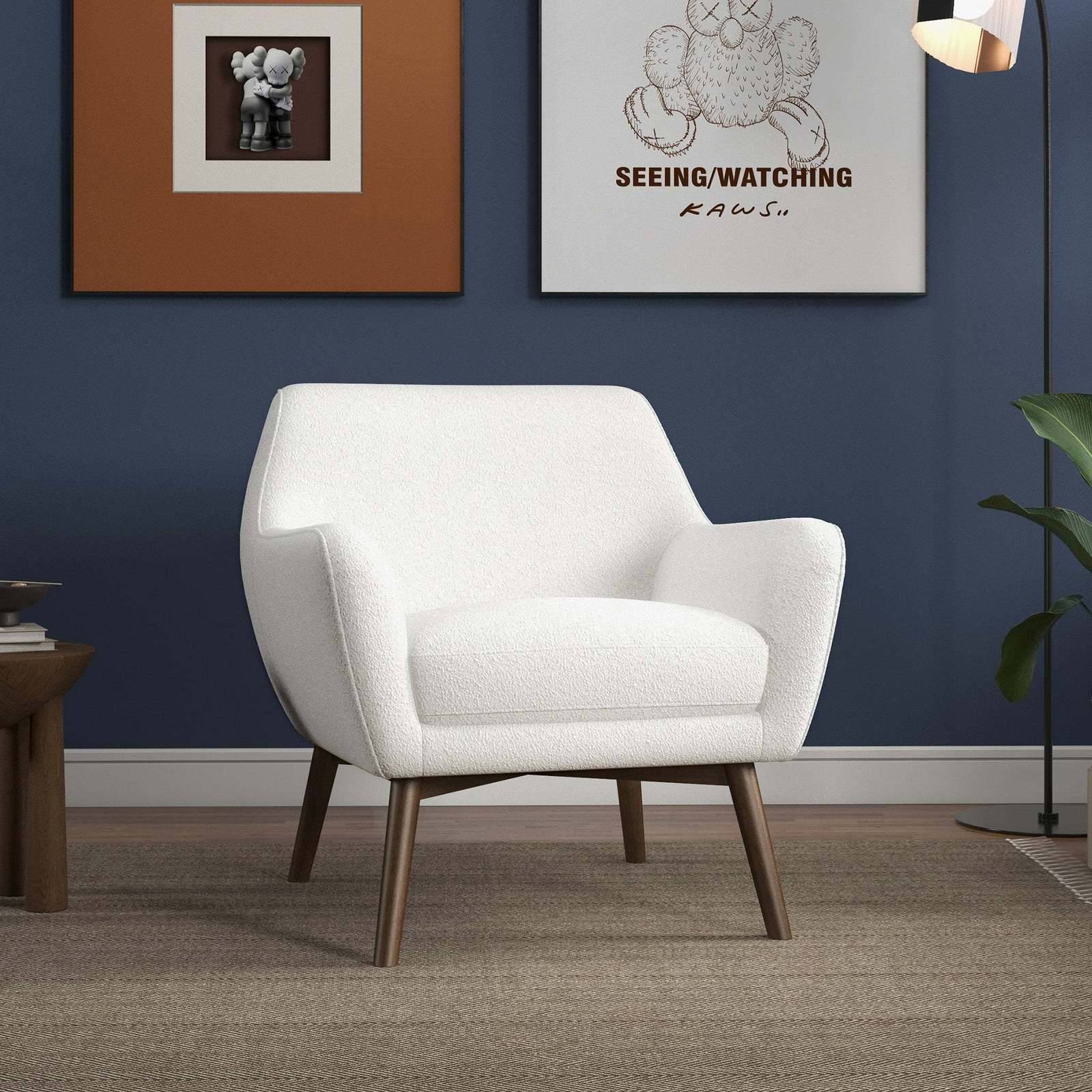 Mid-Century Modern White Boucle Lounge Chair w/ Solid Wood Frame
