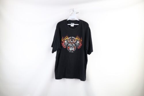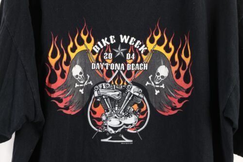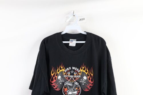 Vtg Y2K 2004 Men XL Faded Spell Out Daytona Beach Bike Week Skull Flames T-Shirt