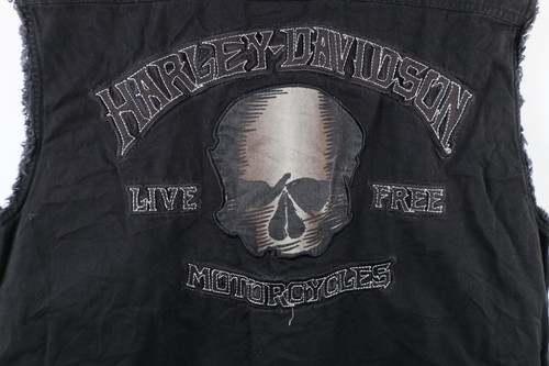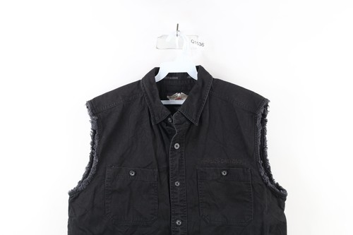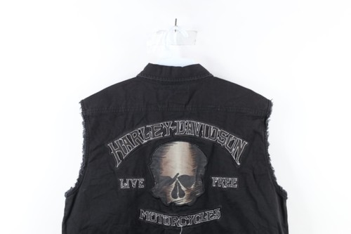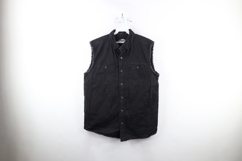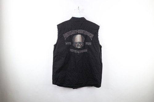 Vintage Harley Davidson Mens Large Faded Spell Out Skull Sleeveless Button Shirt