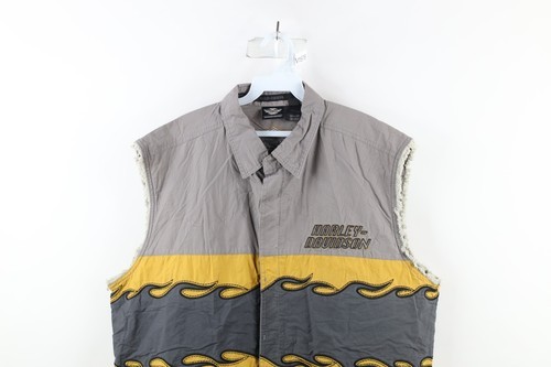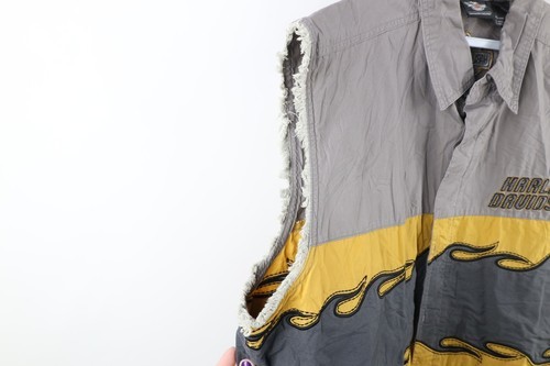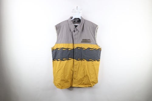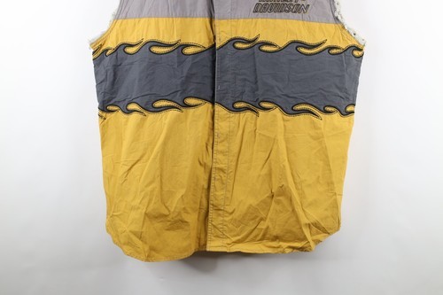 Vintage Harley Davidson Mens 2XL Faded Spell Out Flames Sleeveless Button Shirt